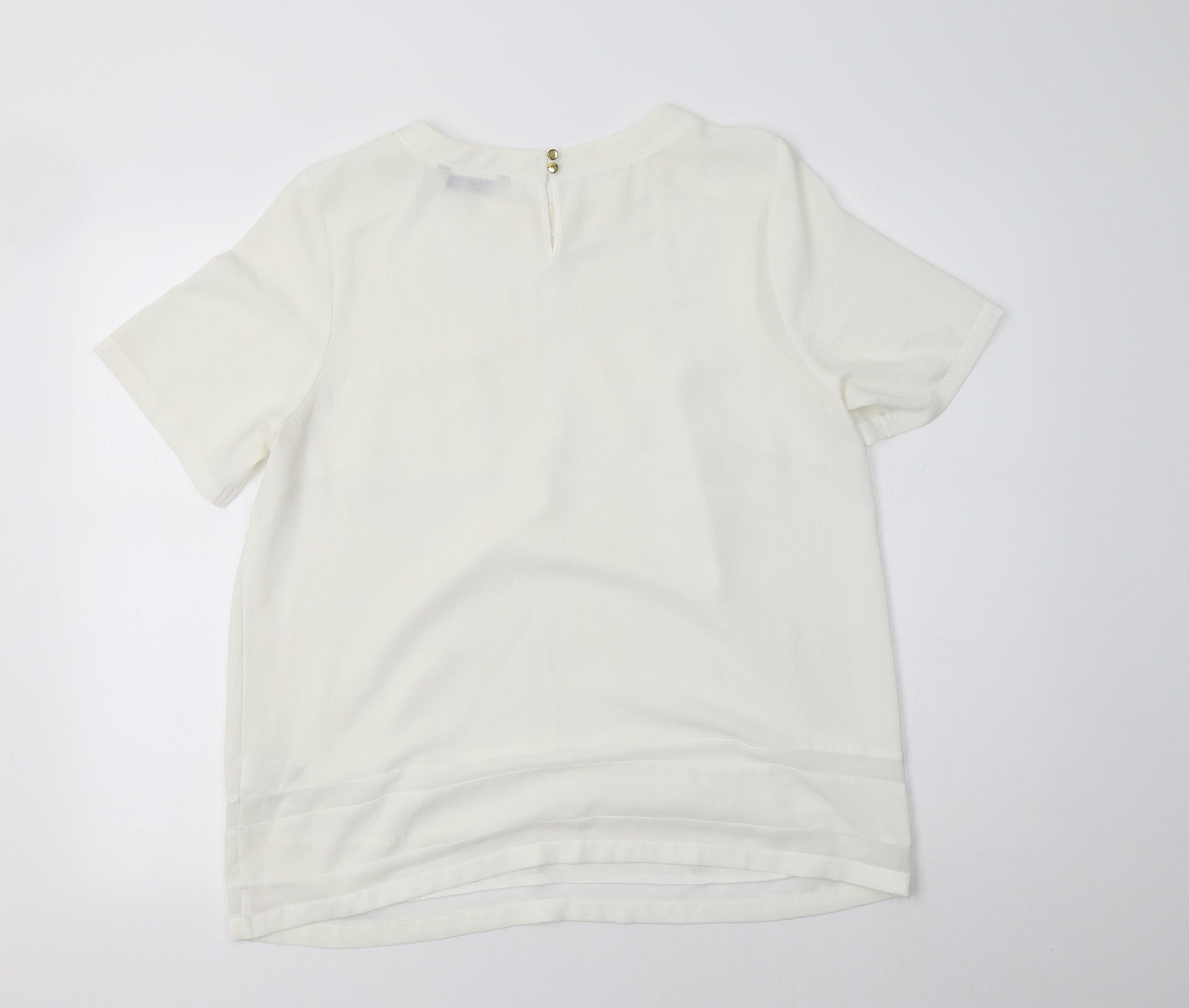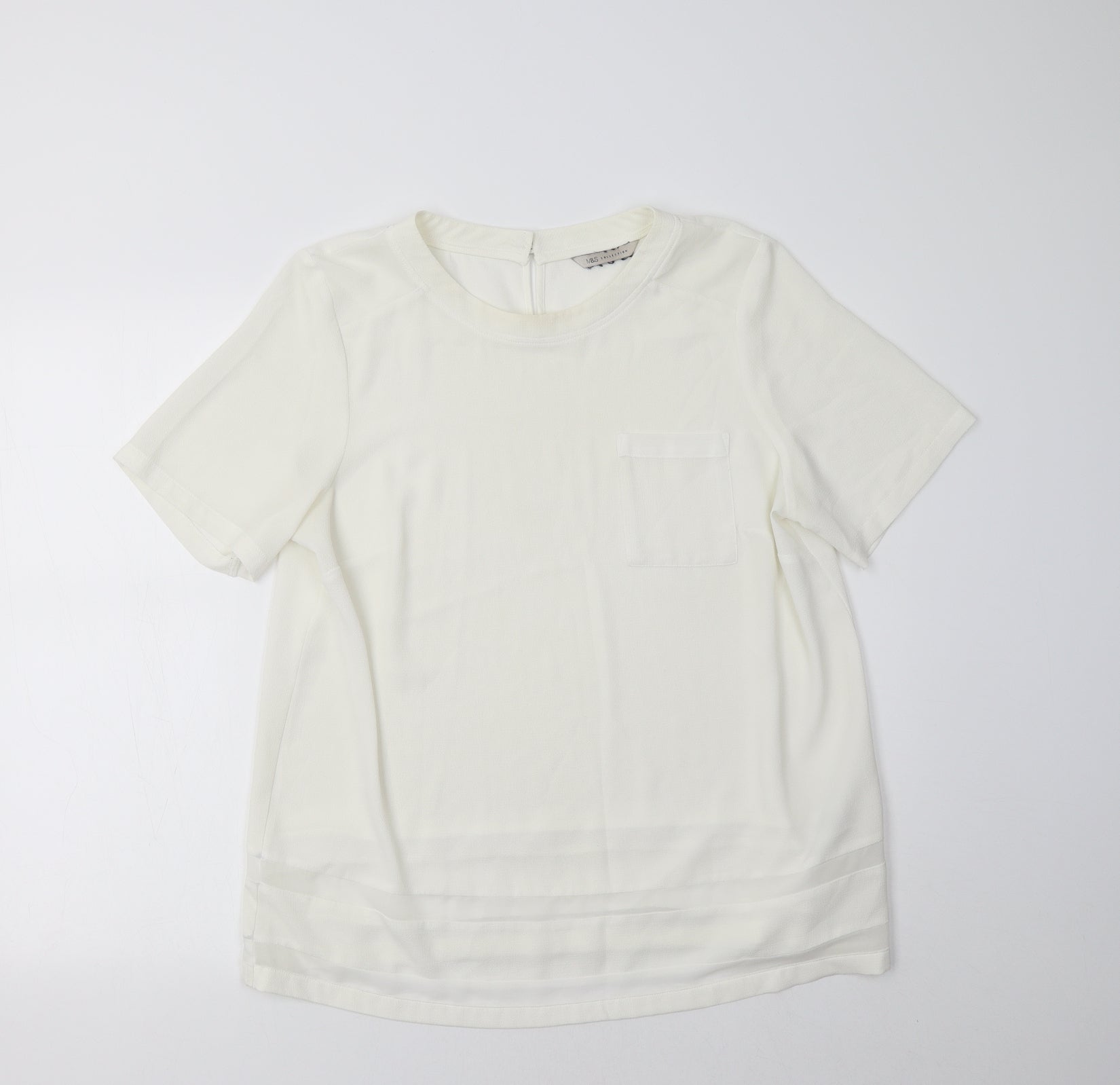 M&S Womens Ivory Polyester Basic Blouse Size 14 Crew Neck
