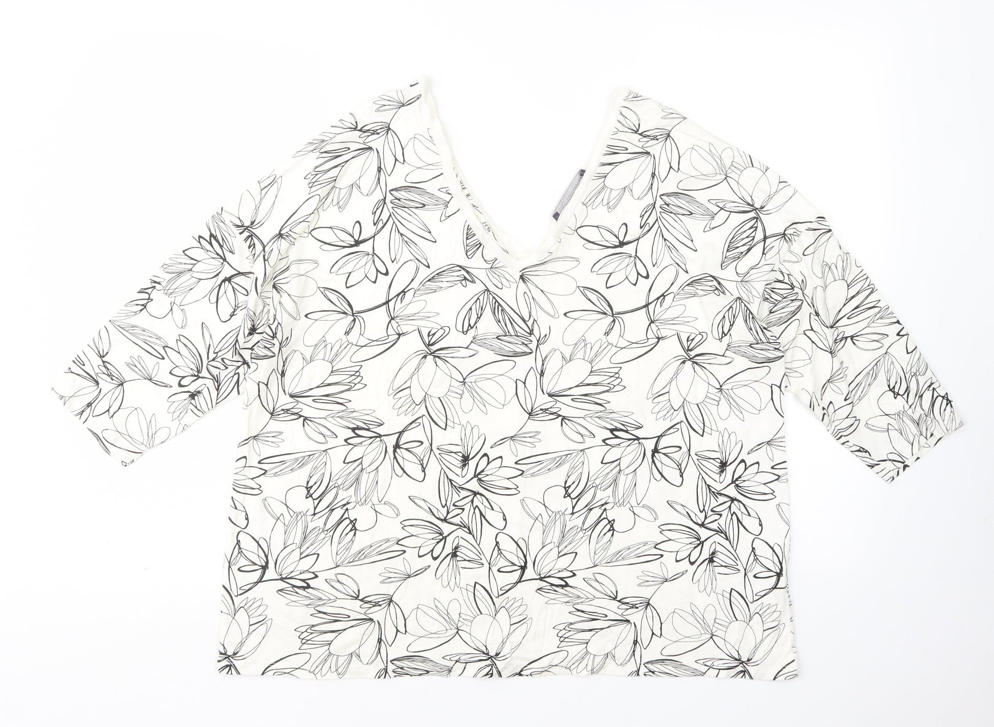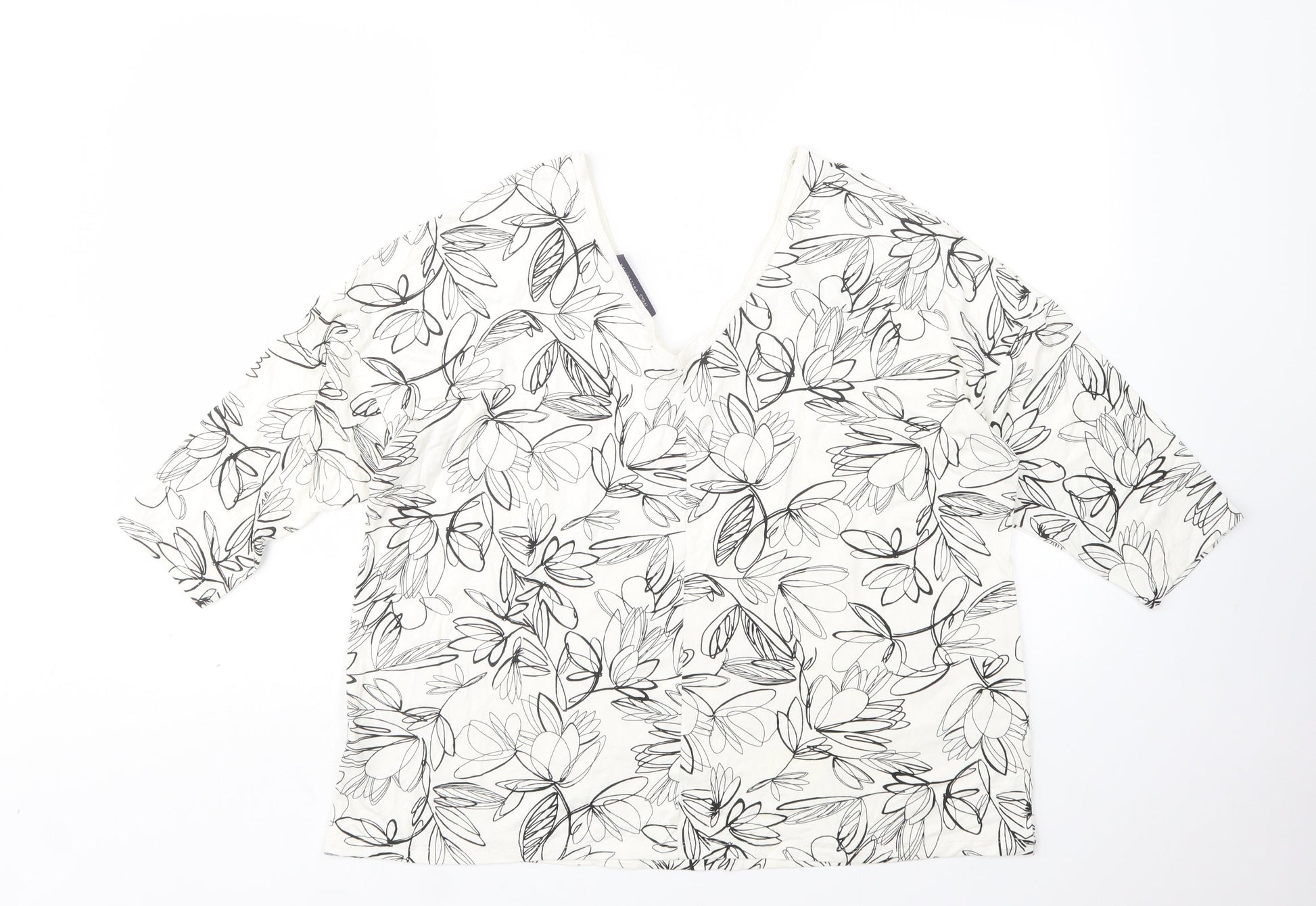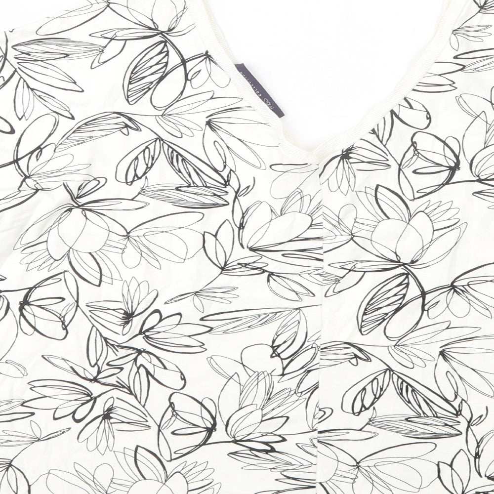 M&S Womens Multicoloured Floral Viscose Basic T-Shirt Size 14 V-Neck