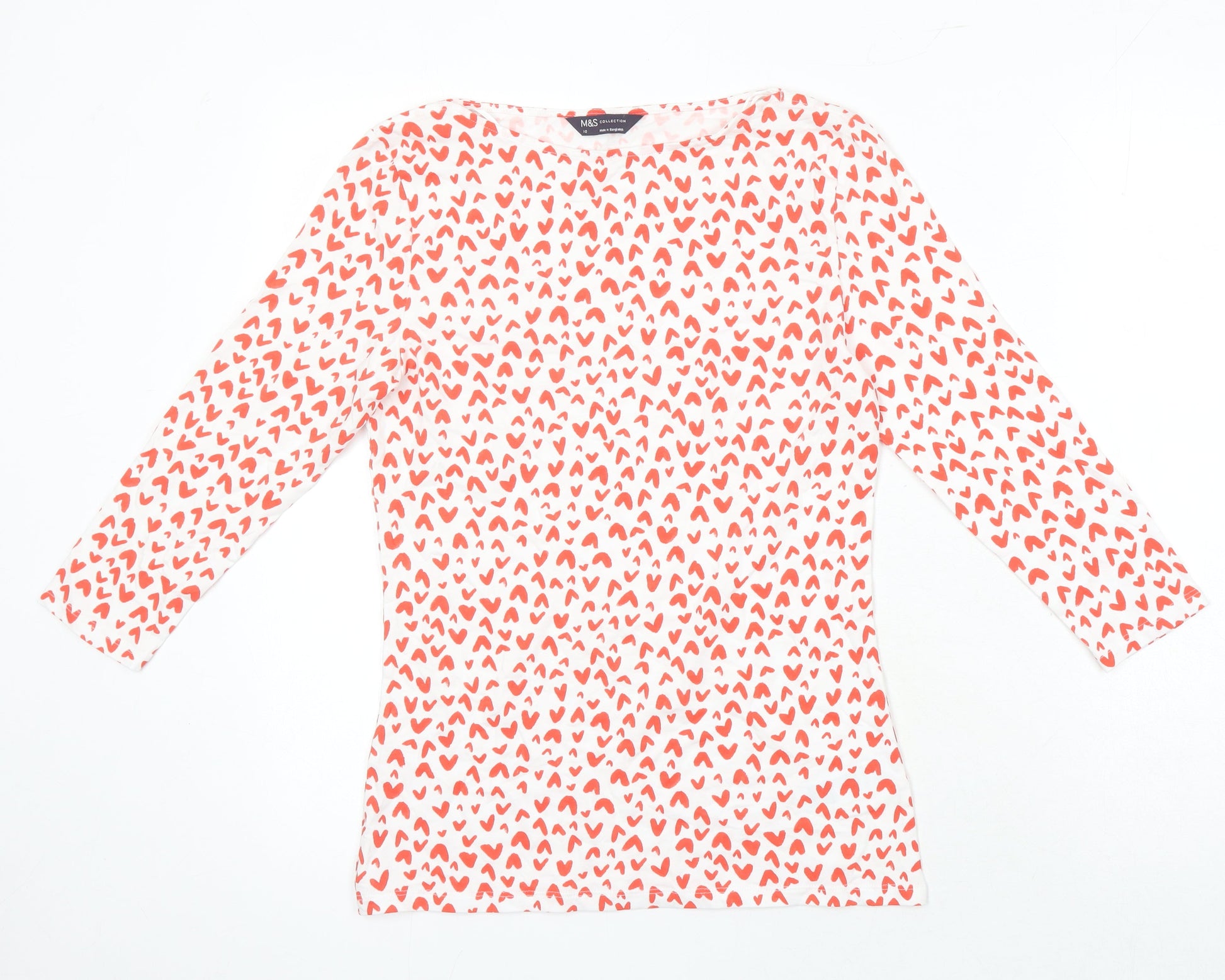 M&S Womens Multicoloured Geometric Chlorofibre Jersey Blouse Size 10 Round Neck