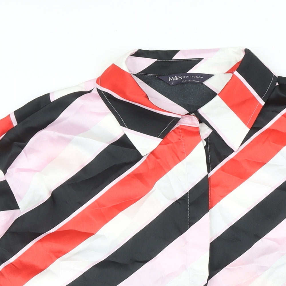 M&S Womens Multicoloured Polka Dot Polyester Basic Blouse Size 8 Collared