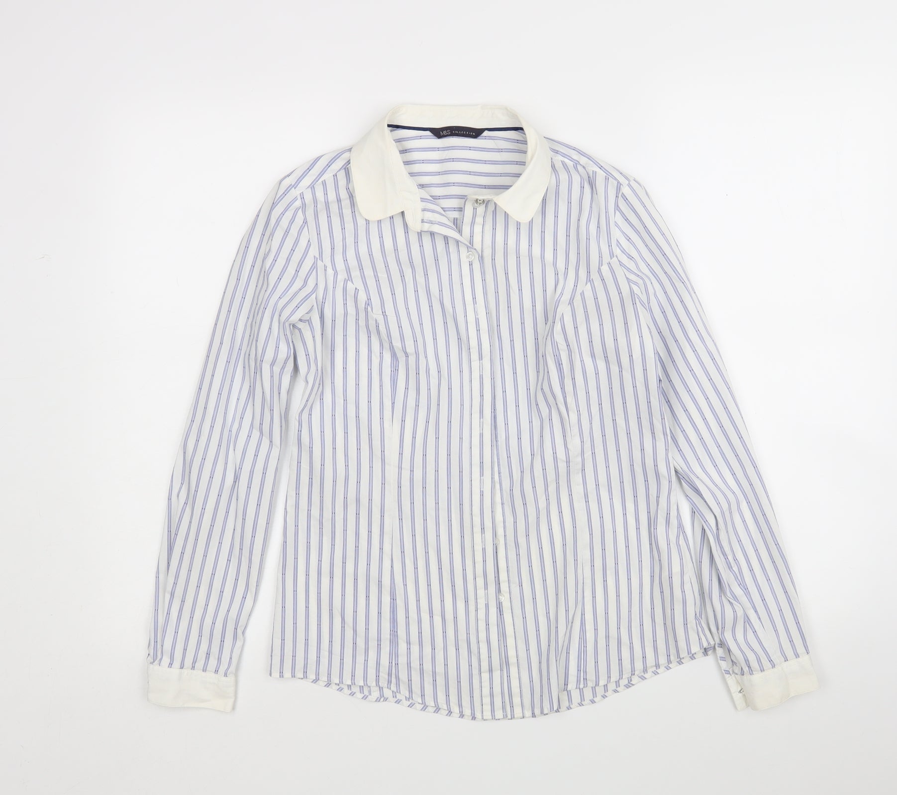 M&S Womens Multicoloured Striped Cotton Basic Button-Up Size 8 Collared