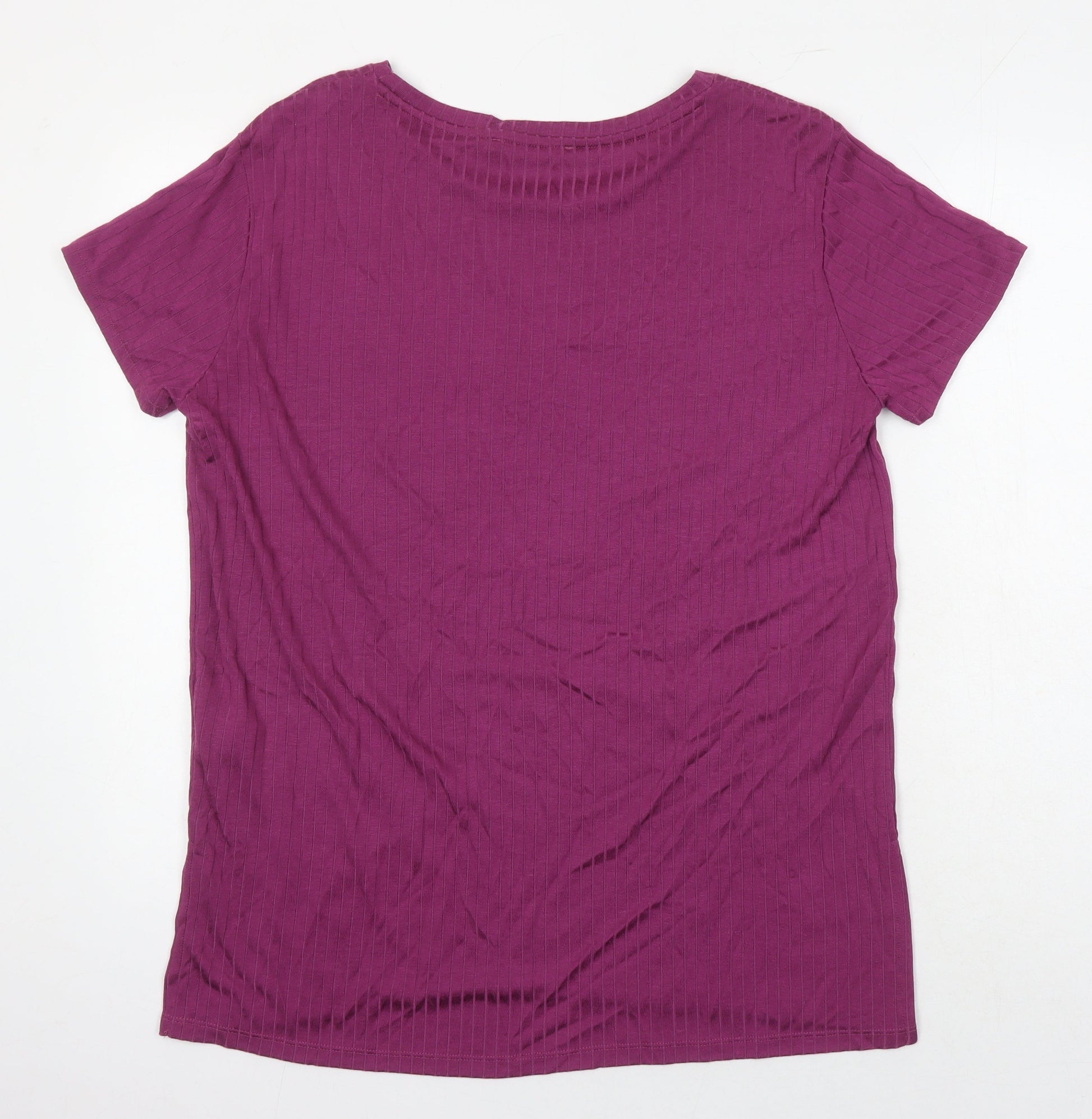 M&S Womens Pink Herringbone Polyester Tunic T-Shirt Size 14 Roll Neck