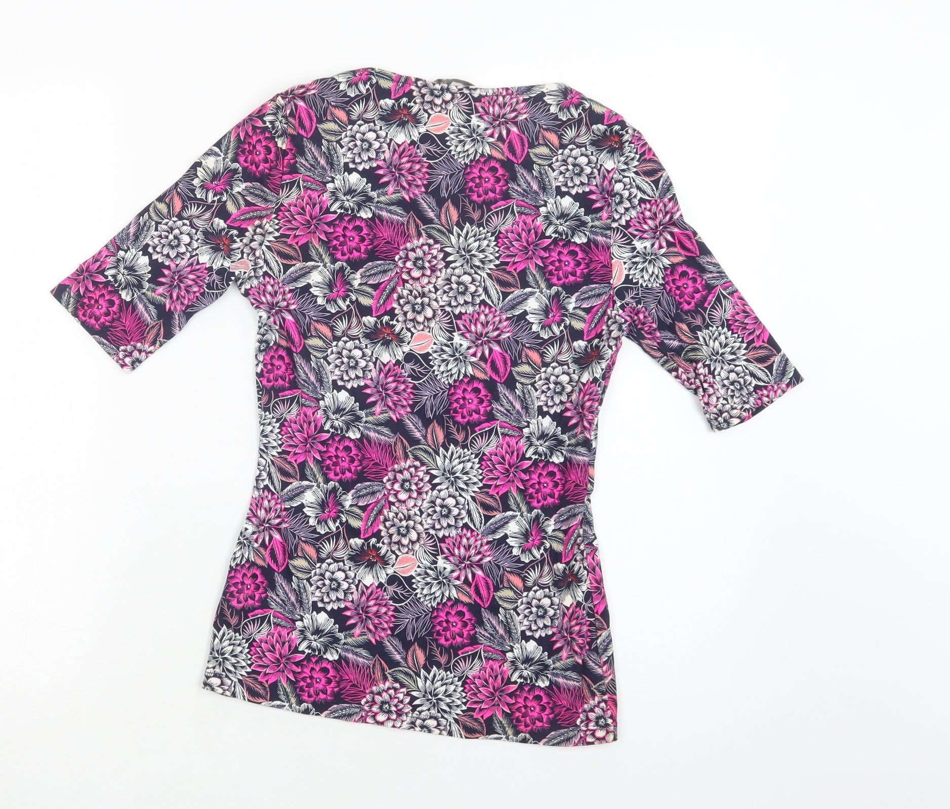 M&S Womens Purple Floral Cotton Basic Blouse Size 8 Scoop Neck
