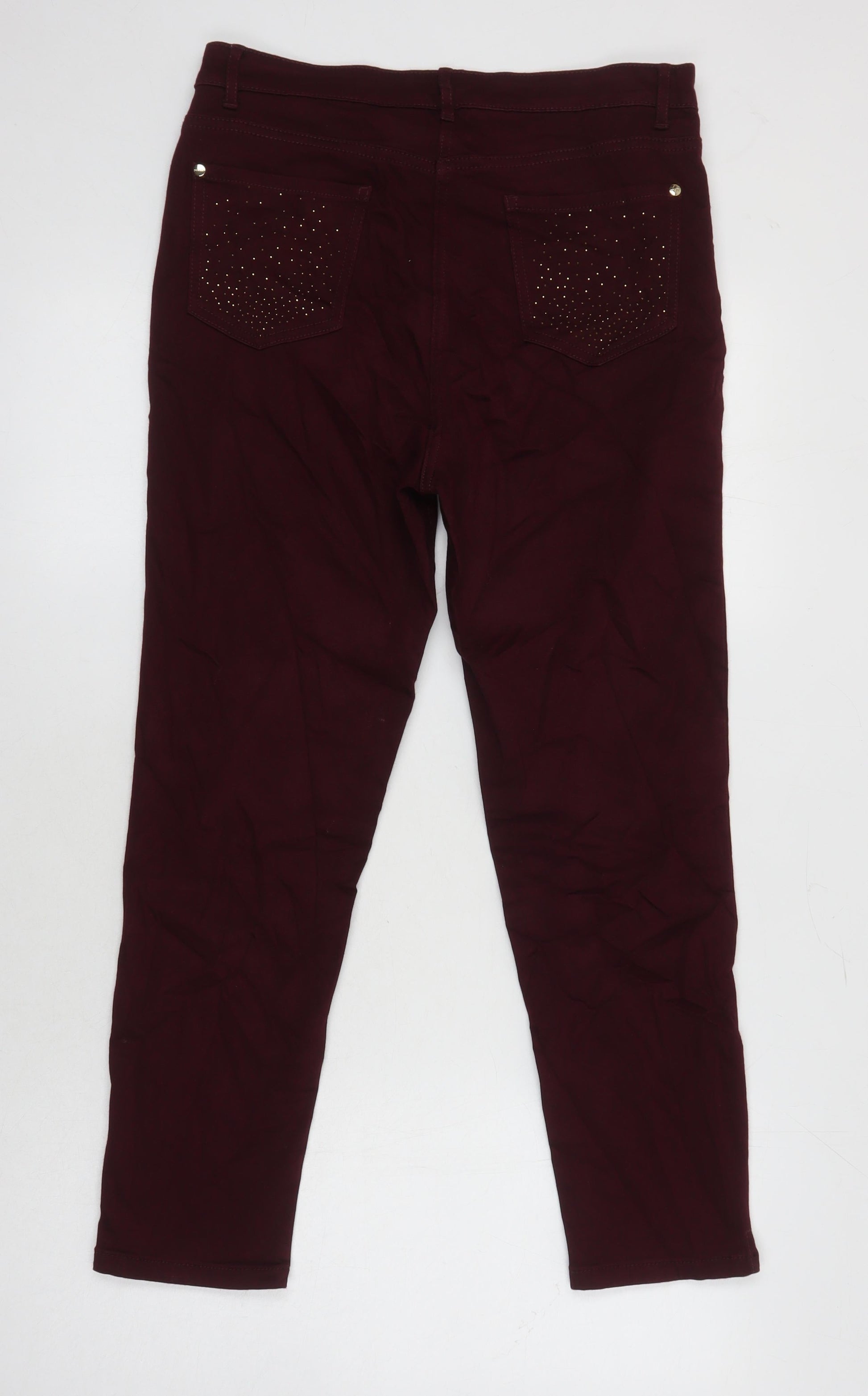M&S Womens Red Cotton Skinny Jeans Size 12 L24 in Regular - Rhinestone detailing