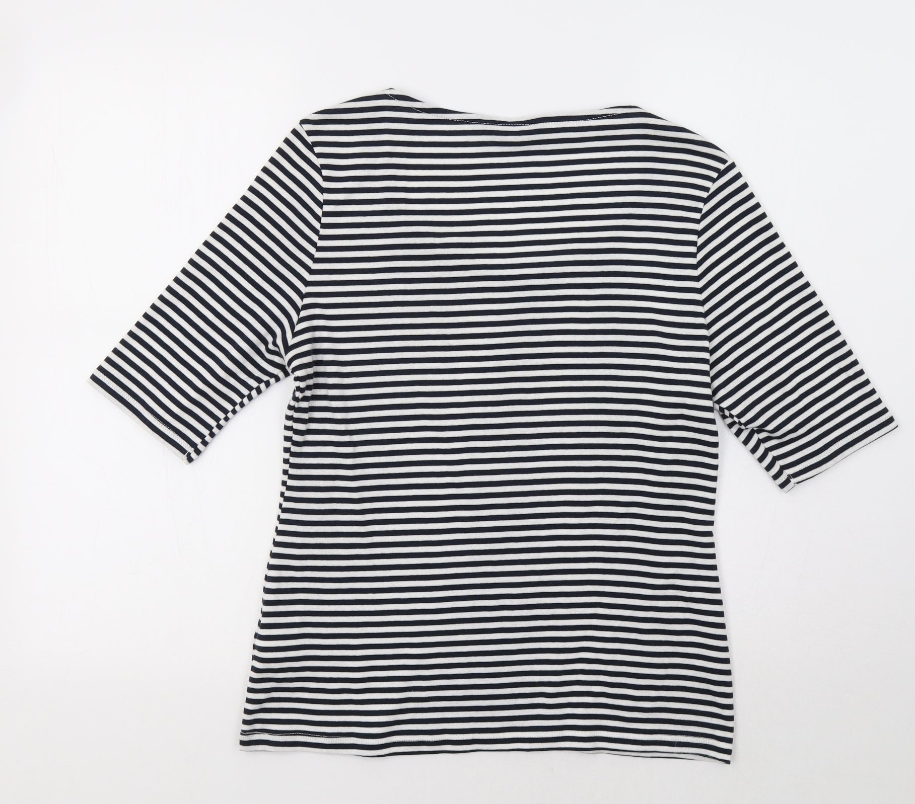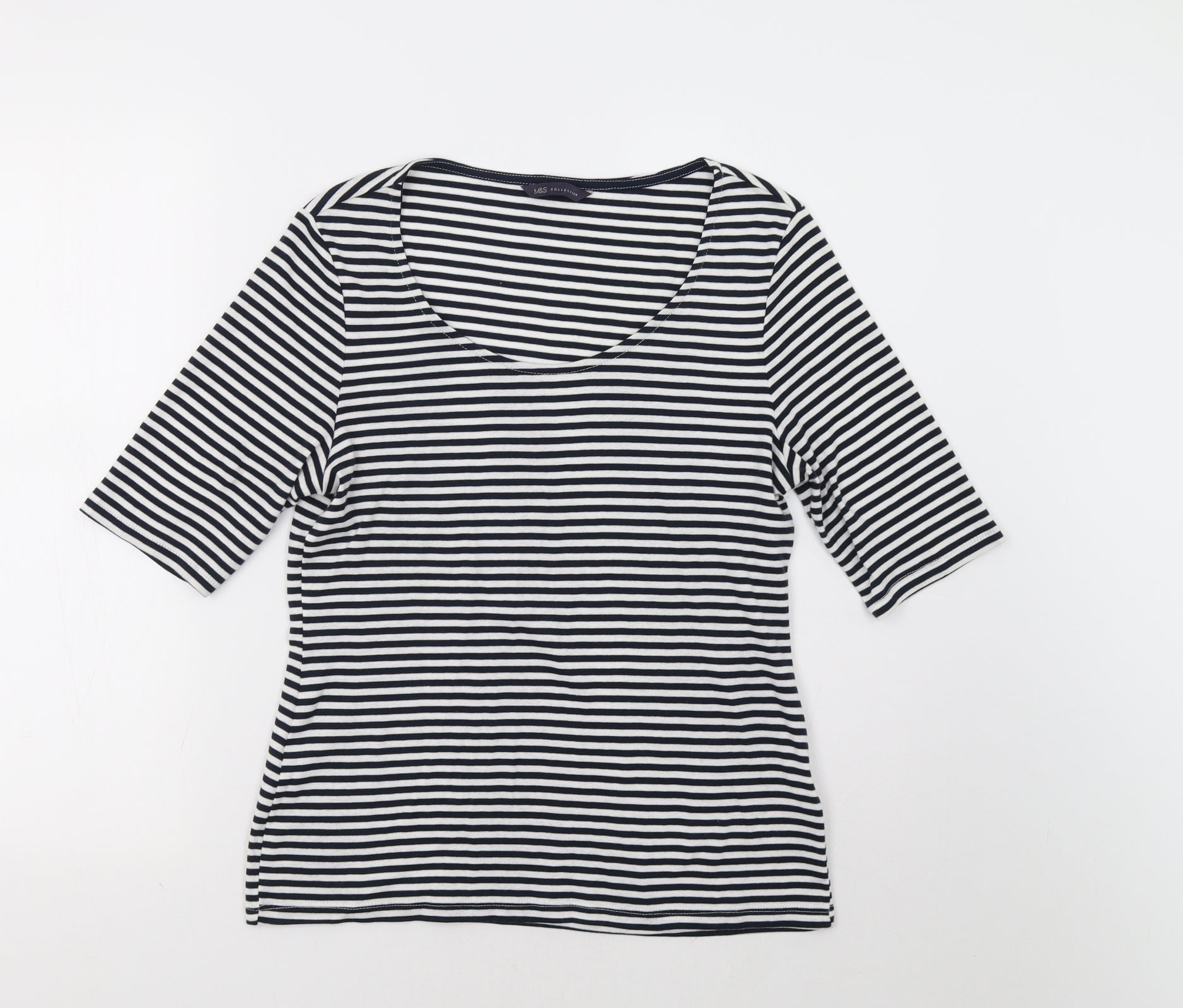 M&S Womens White Striped Basic T-Shirt Size 14