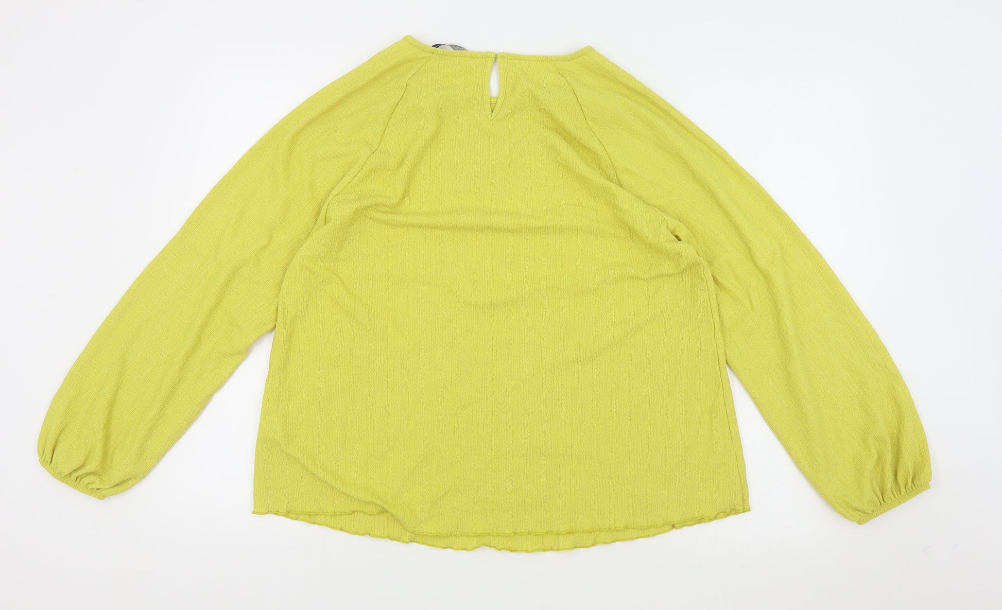 M&S Womens Yellow Polyester Basic Blouse Size 14 Round Neck - Keyhole