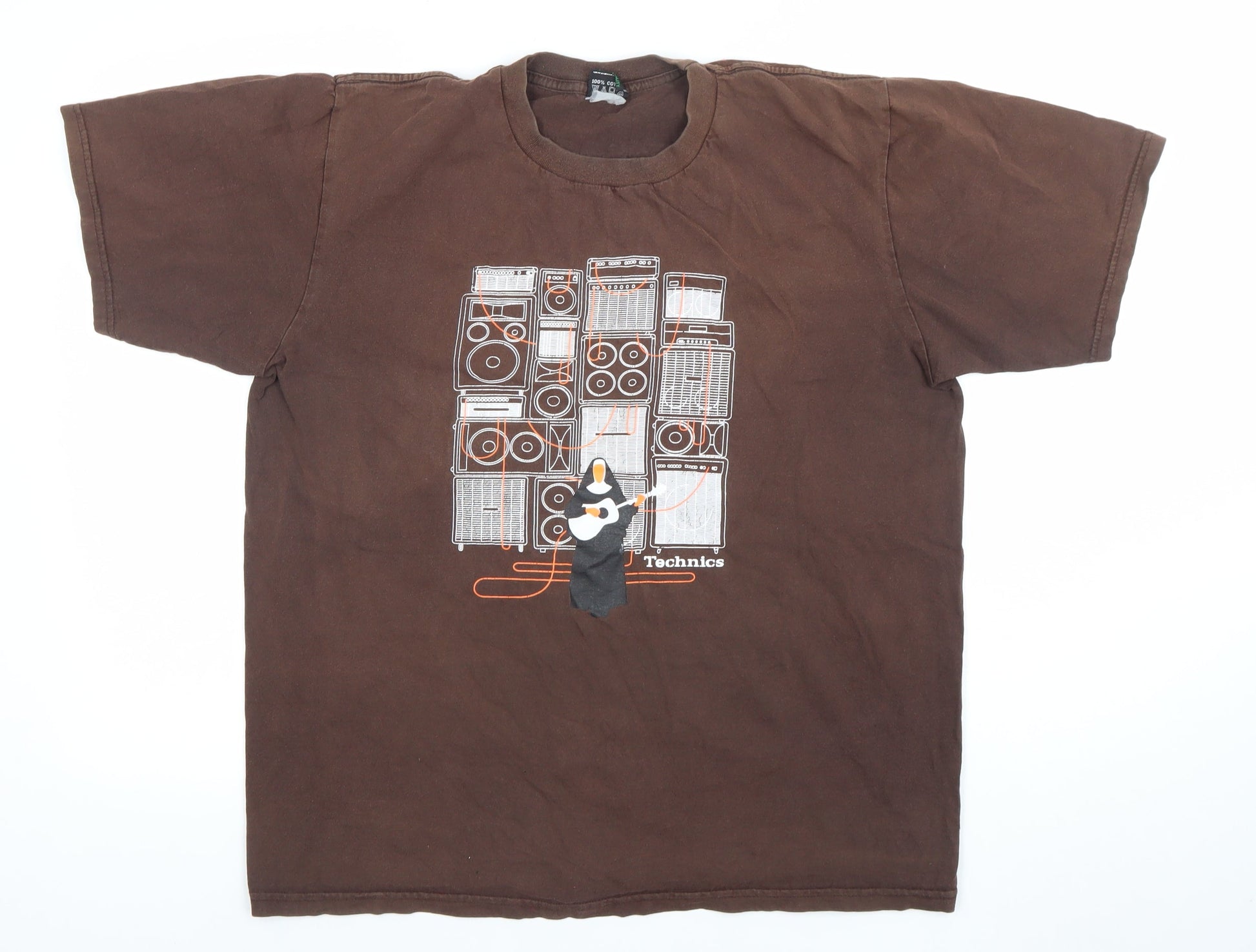 M-U Mens Brown Technics Graphic Short Sleeve Cotton T-Shirt L
