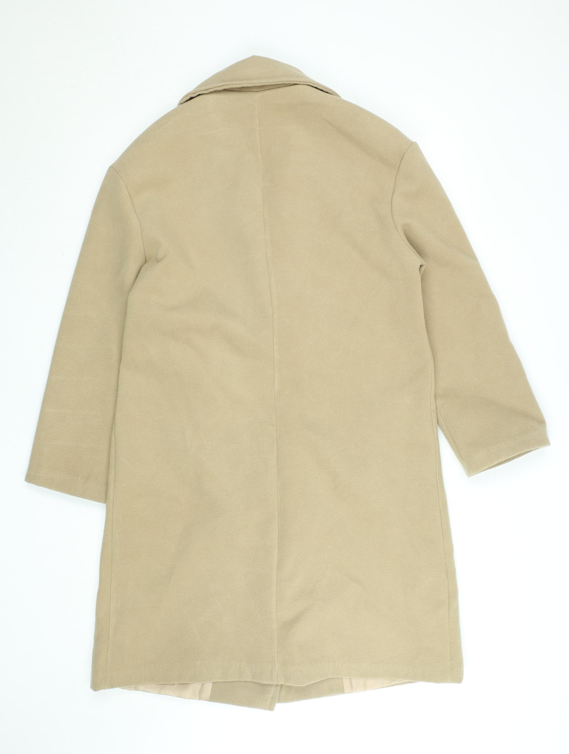 Made in Italy Womens Beige Long Pea Coat Size 10 Polyester