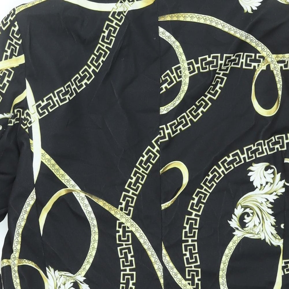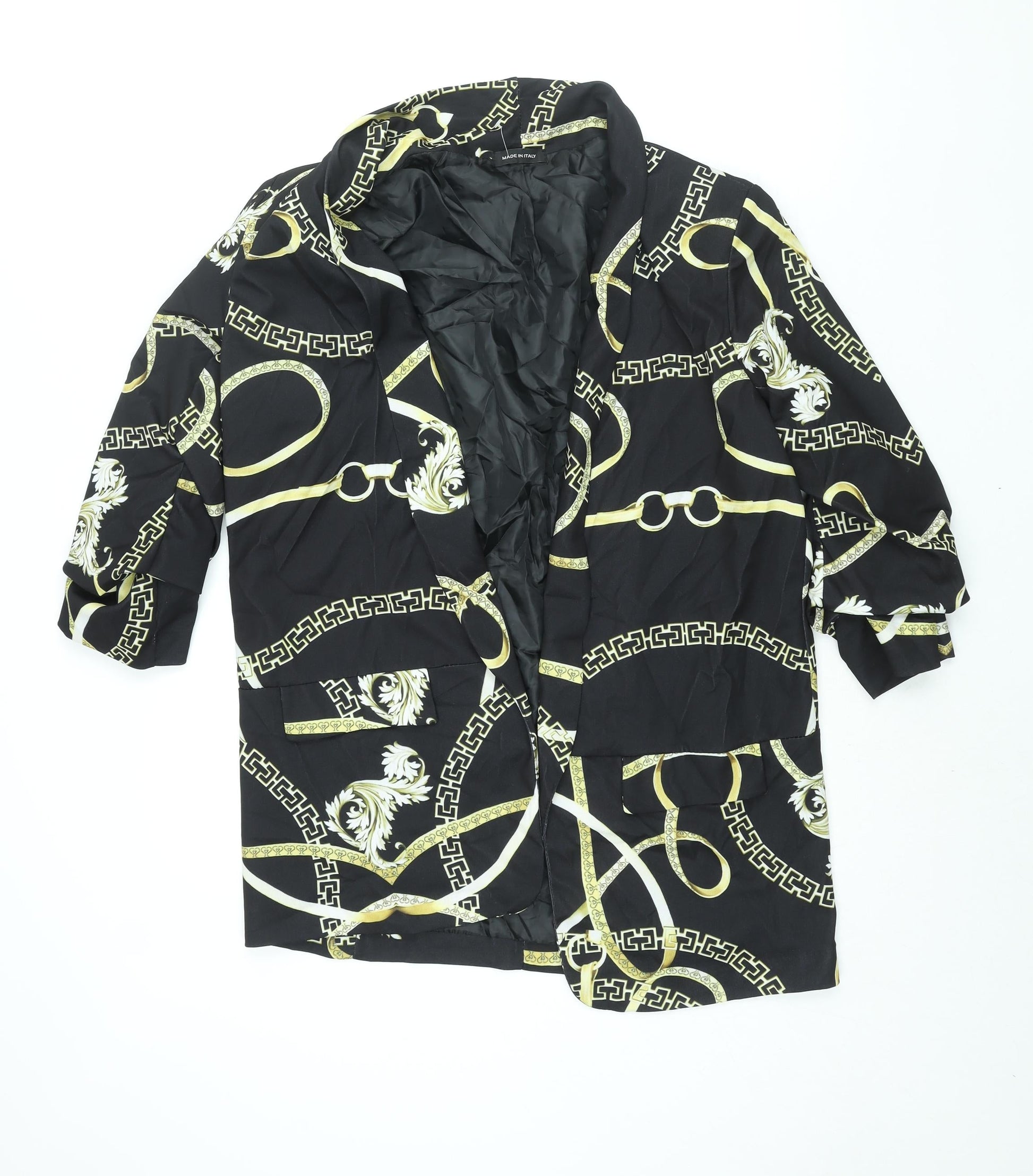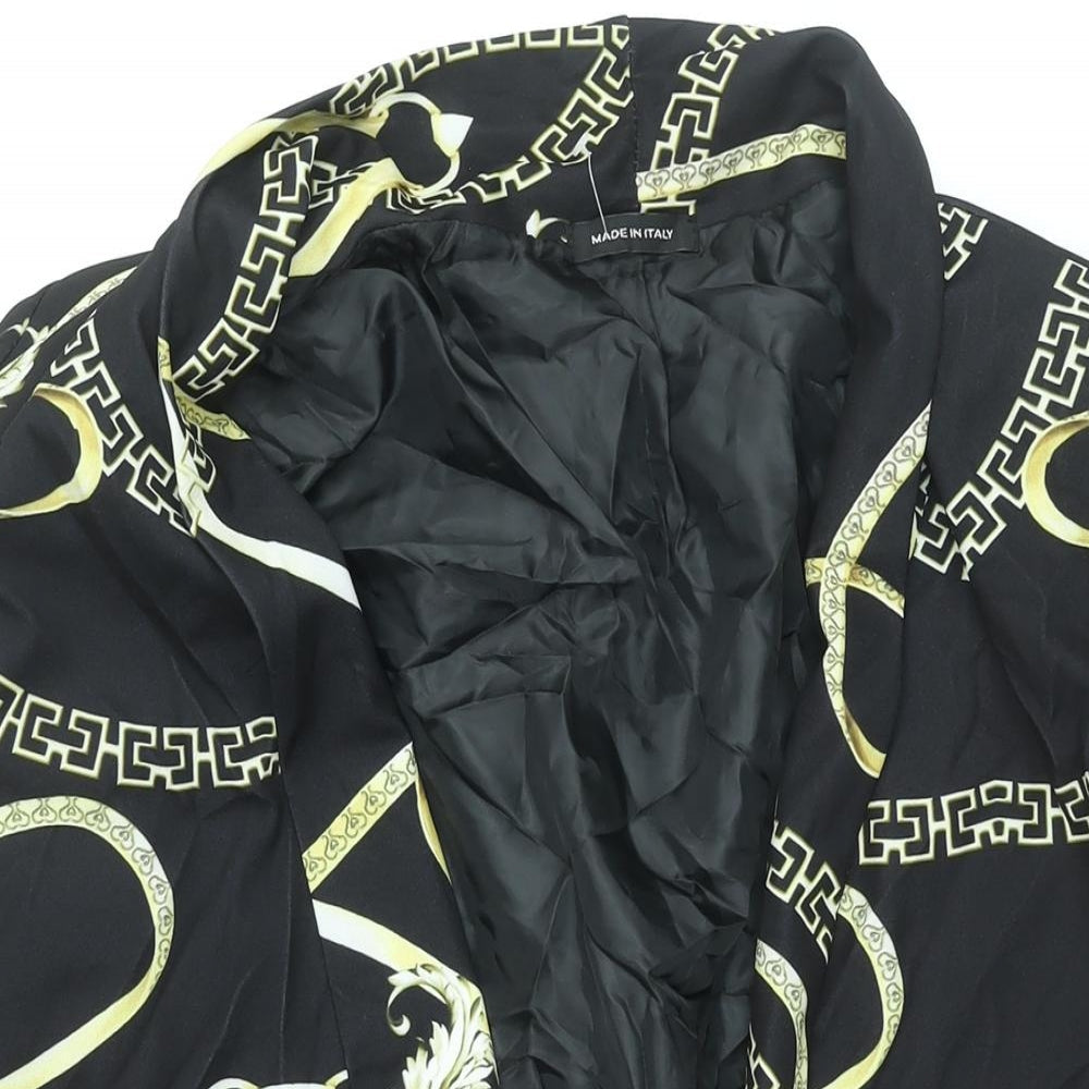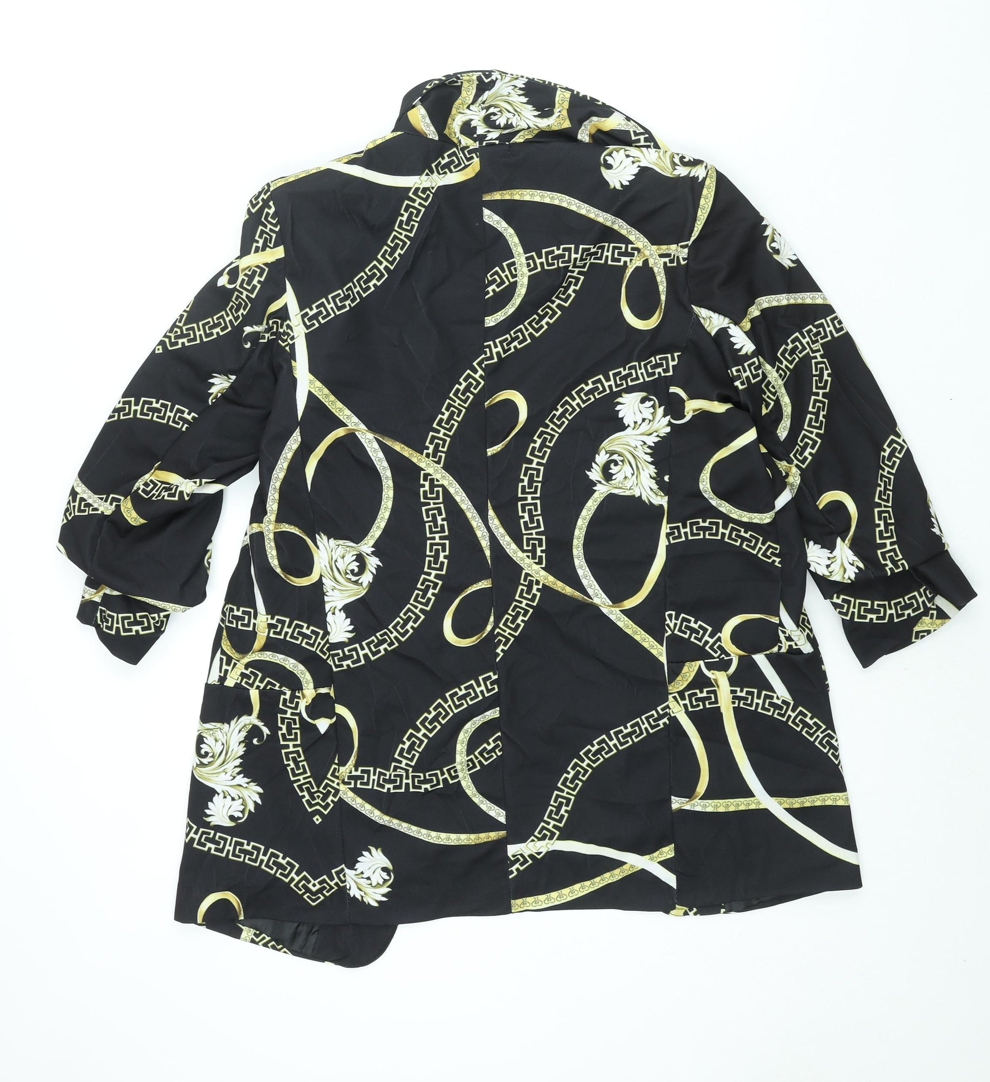 Made in Italy Womens Black Geometric Jacket Blazer Size 16 - Rouched Sleeve
