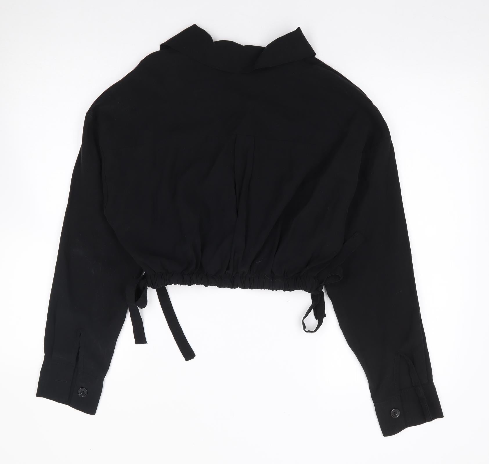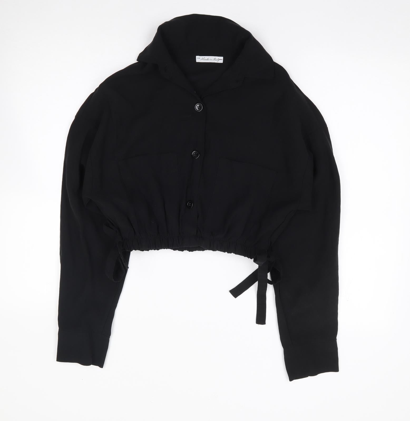 Made in Italy Womens Black Viscose Cropped Button-Up Size S Collared