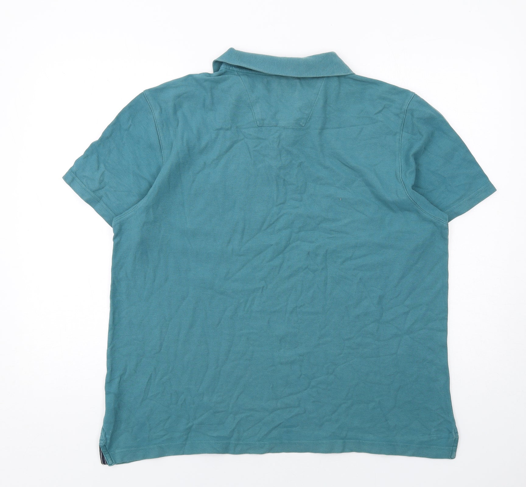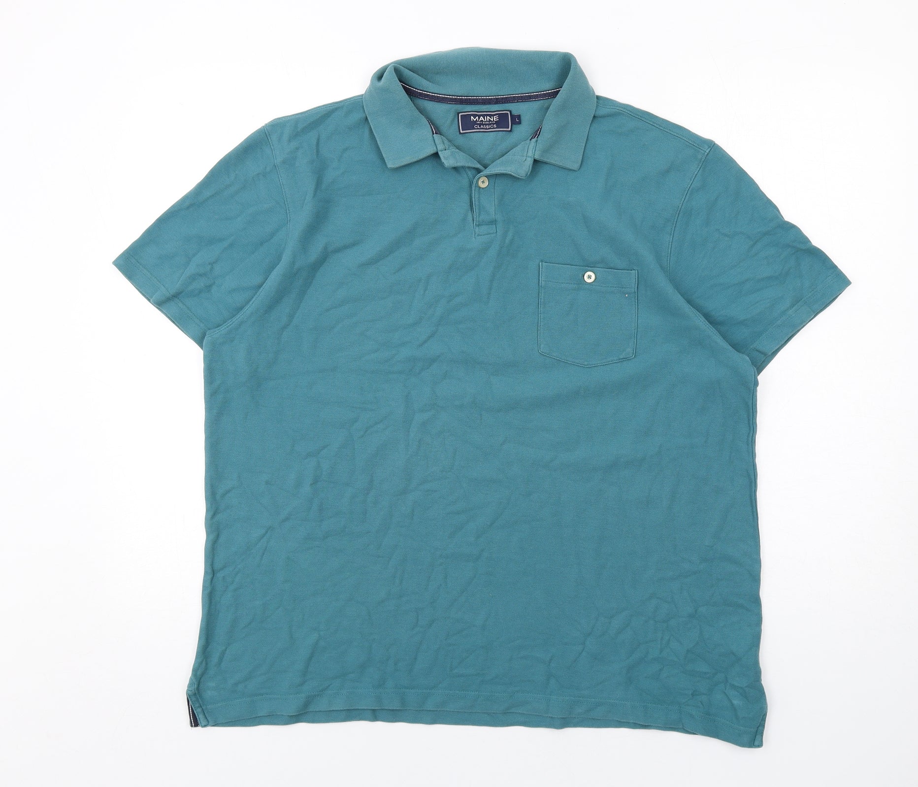 Maine Mens Blue Cotton Polo Size L Collared Button