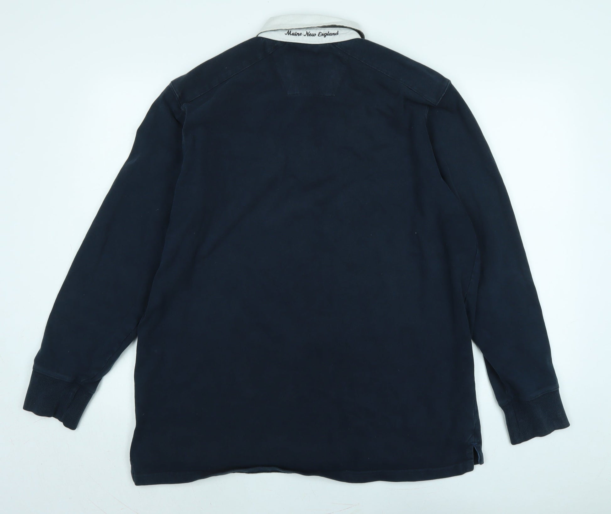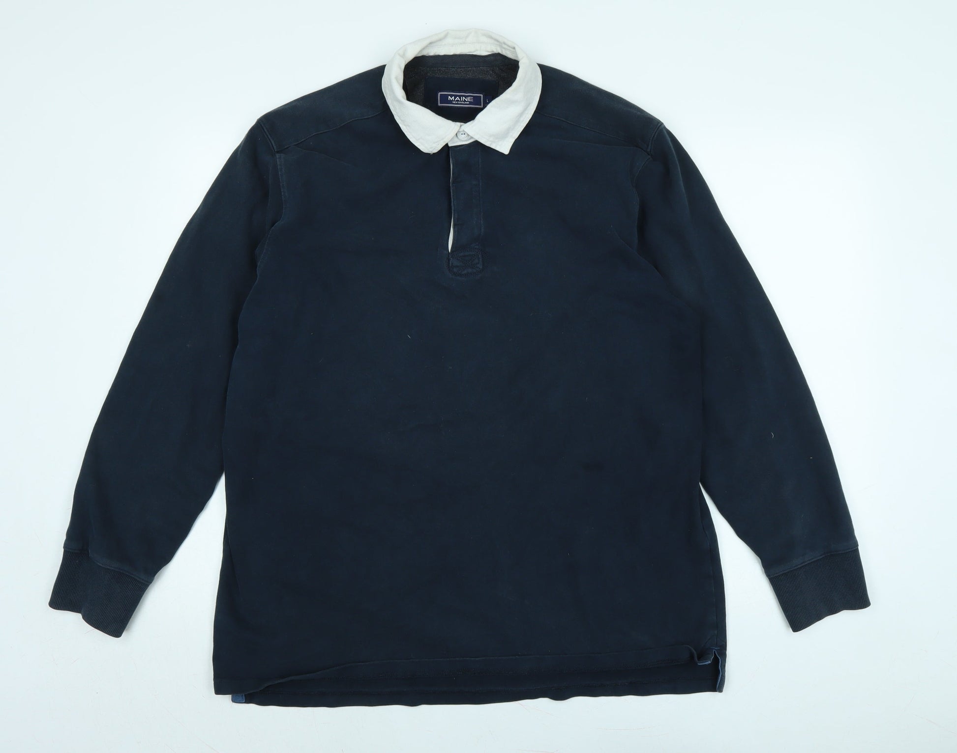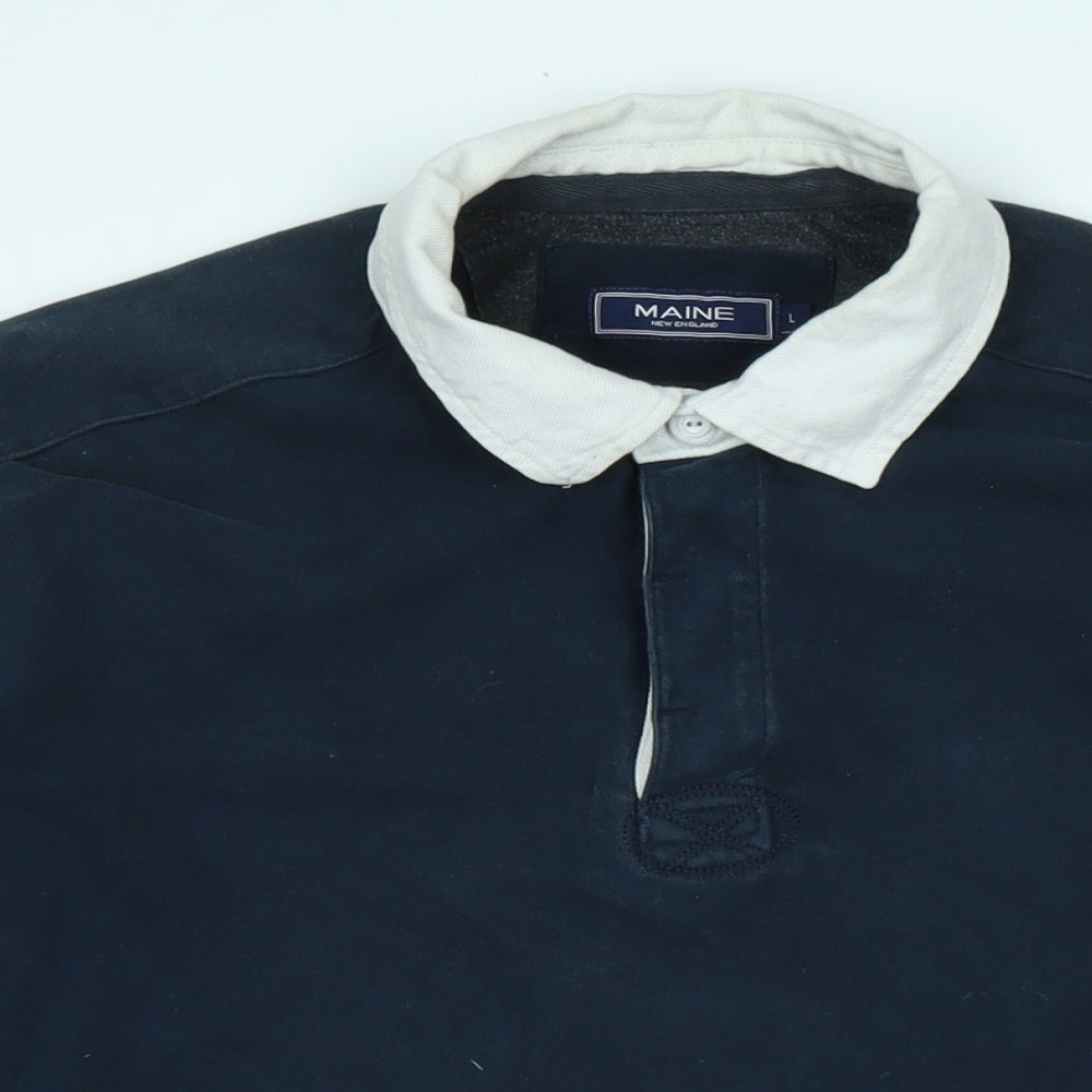 Maine Mens Blue Cotton Polo Size L Collared Button