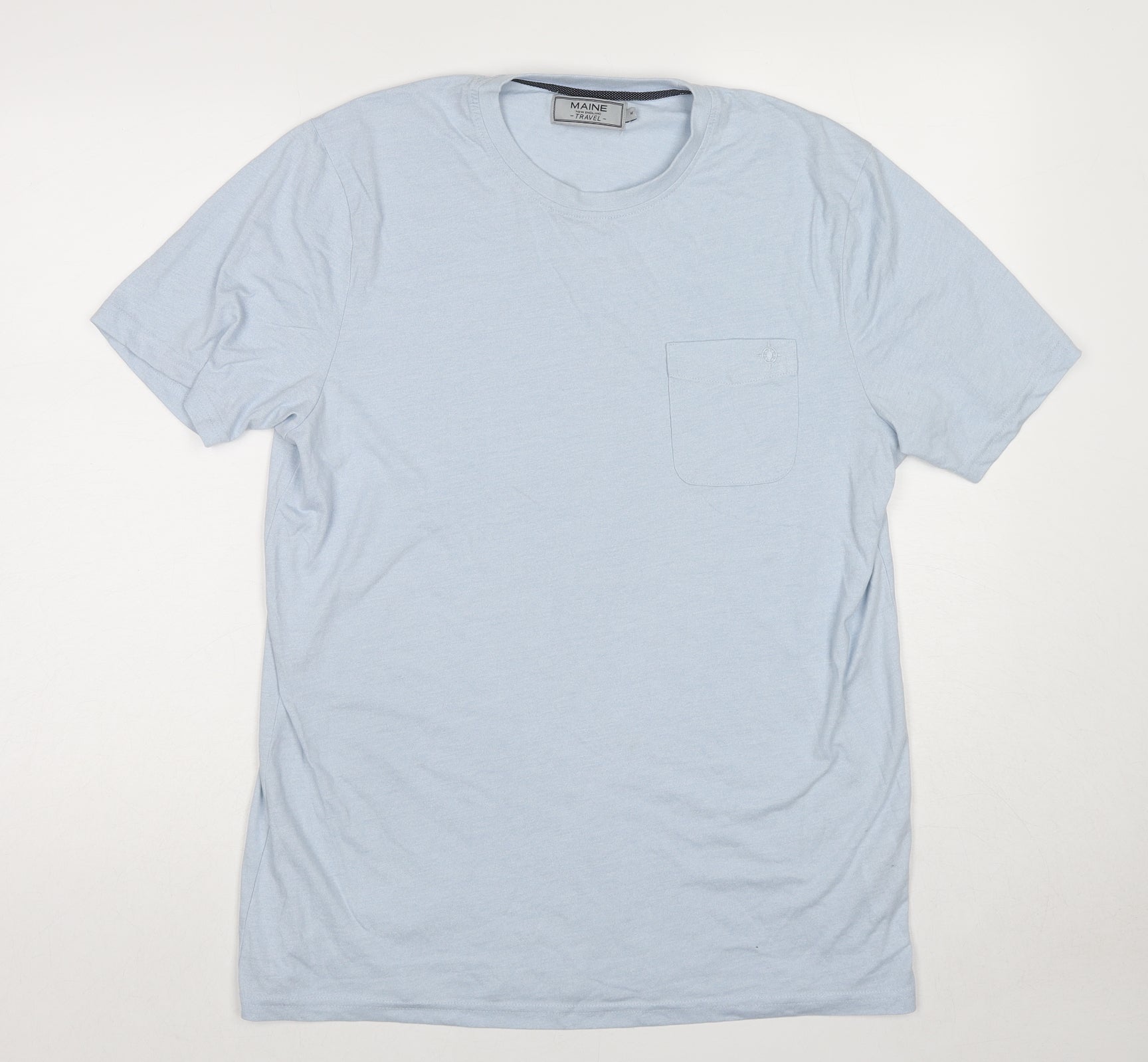 Maine Mens Blue Cotton T-Shirt Size M Round Neck