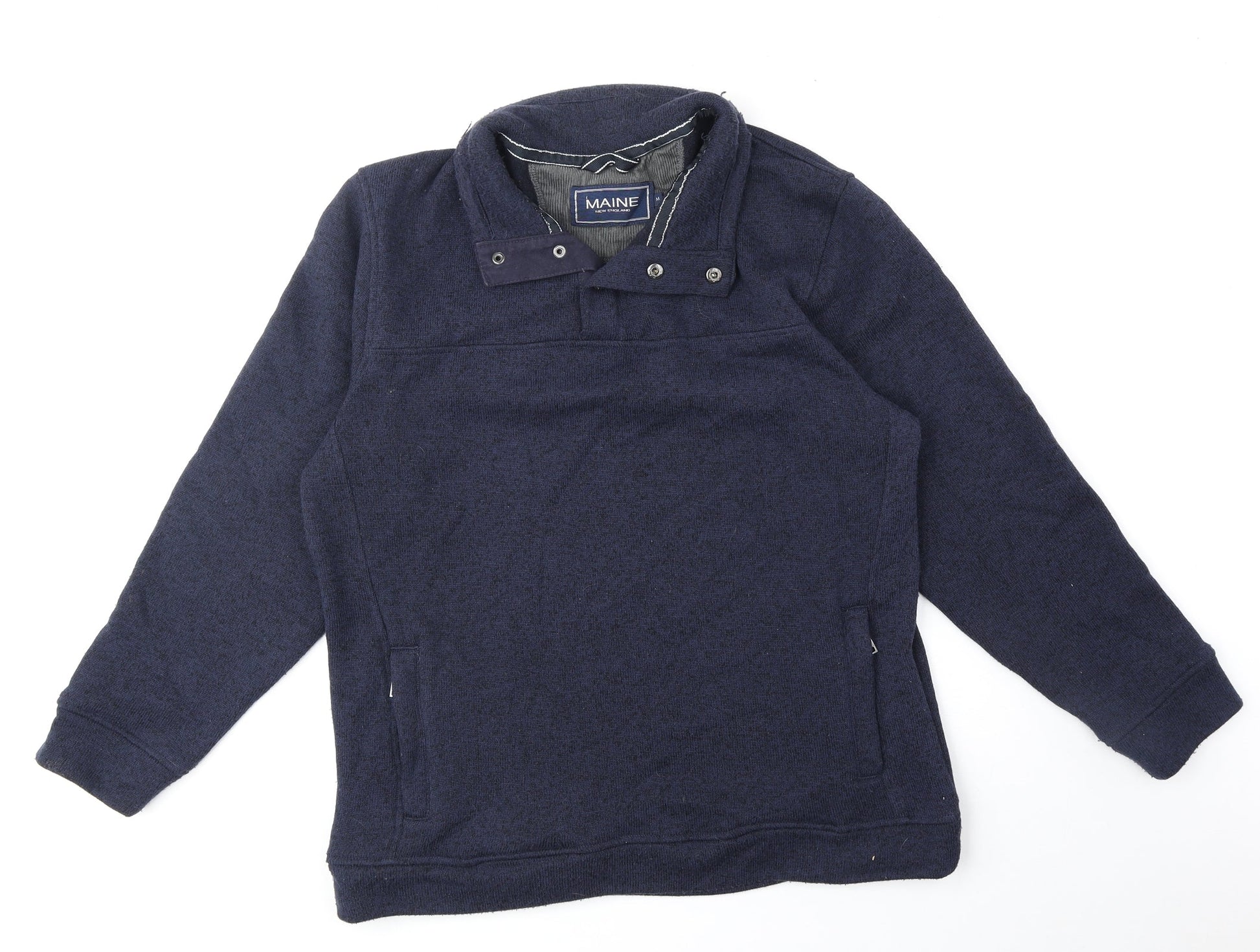 Maine Mens Blue High Neck Polyester Henley Jumper Size M Long Sleeve