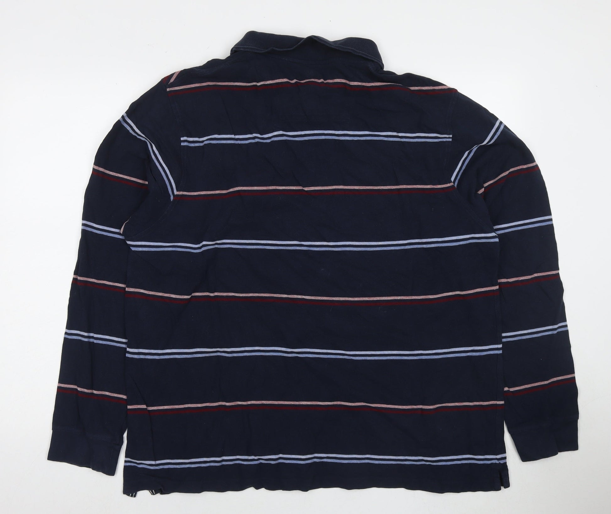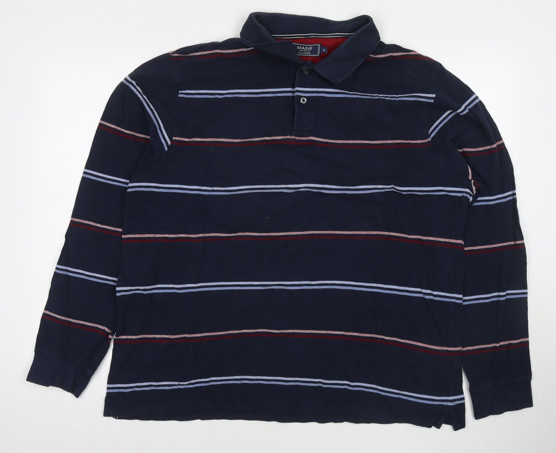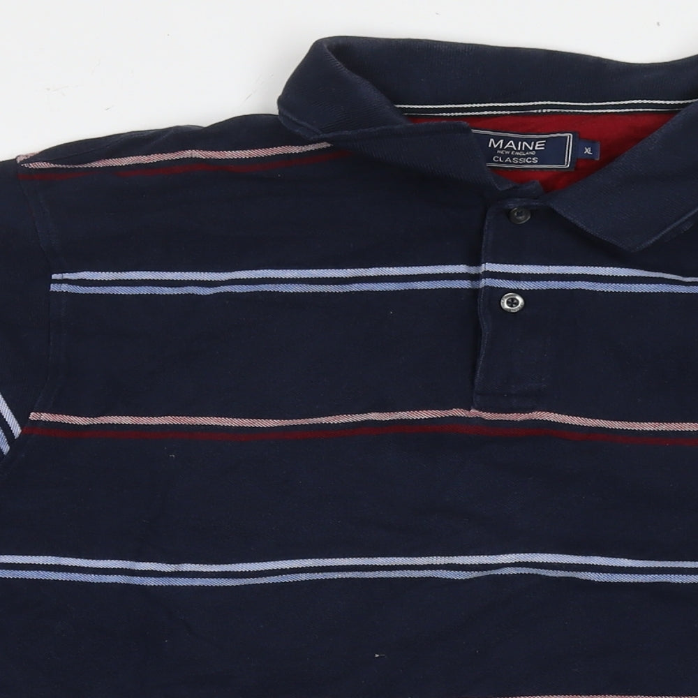 Maine Mens Blue Striped Cotton Polo Size XL Collared Pullover