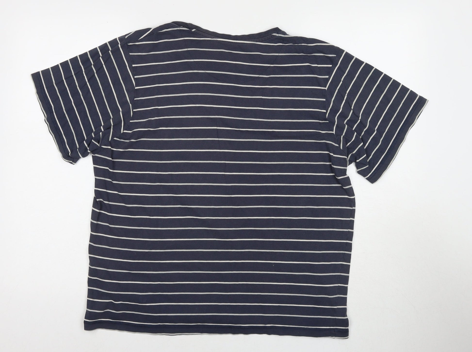 Maine Mens Blue Striped Cotton T-Shirt Size M Round Neck