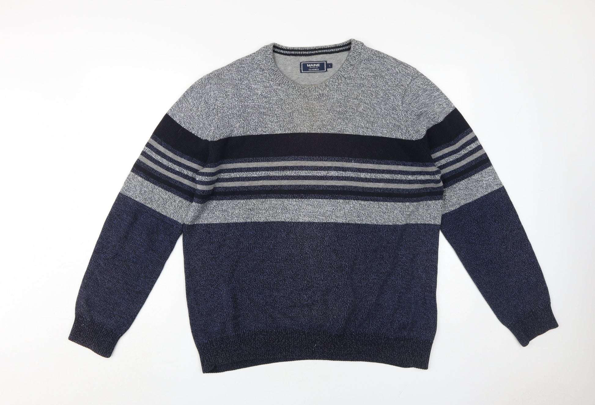 Maine Men's Blue Striped Pullover Jumper Size L