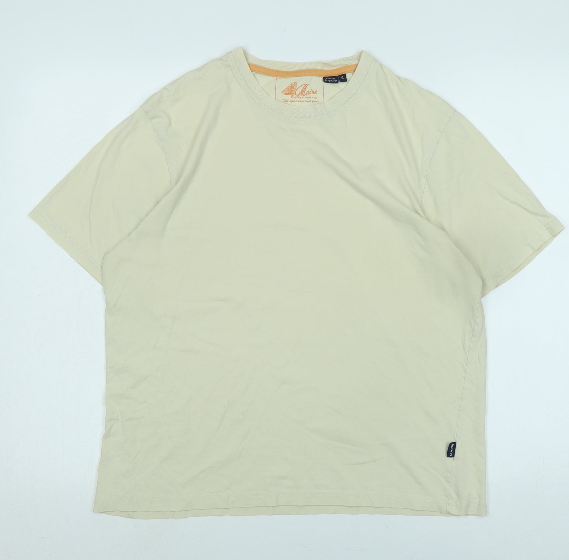 Maine Mens Ivory Cotton T-Shirt Size S Crew Neck