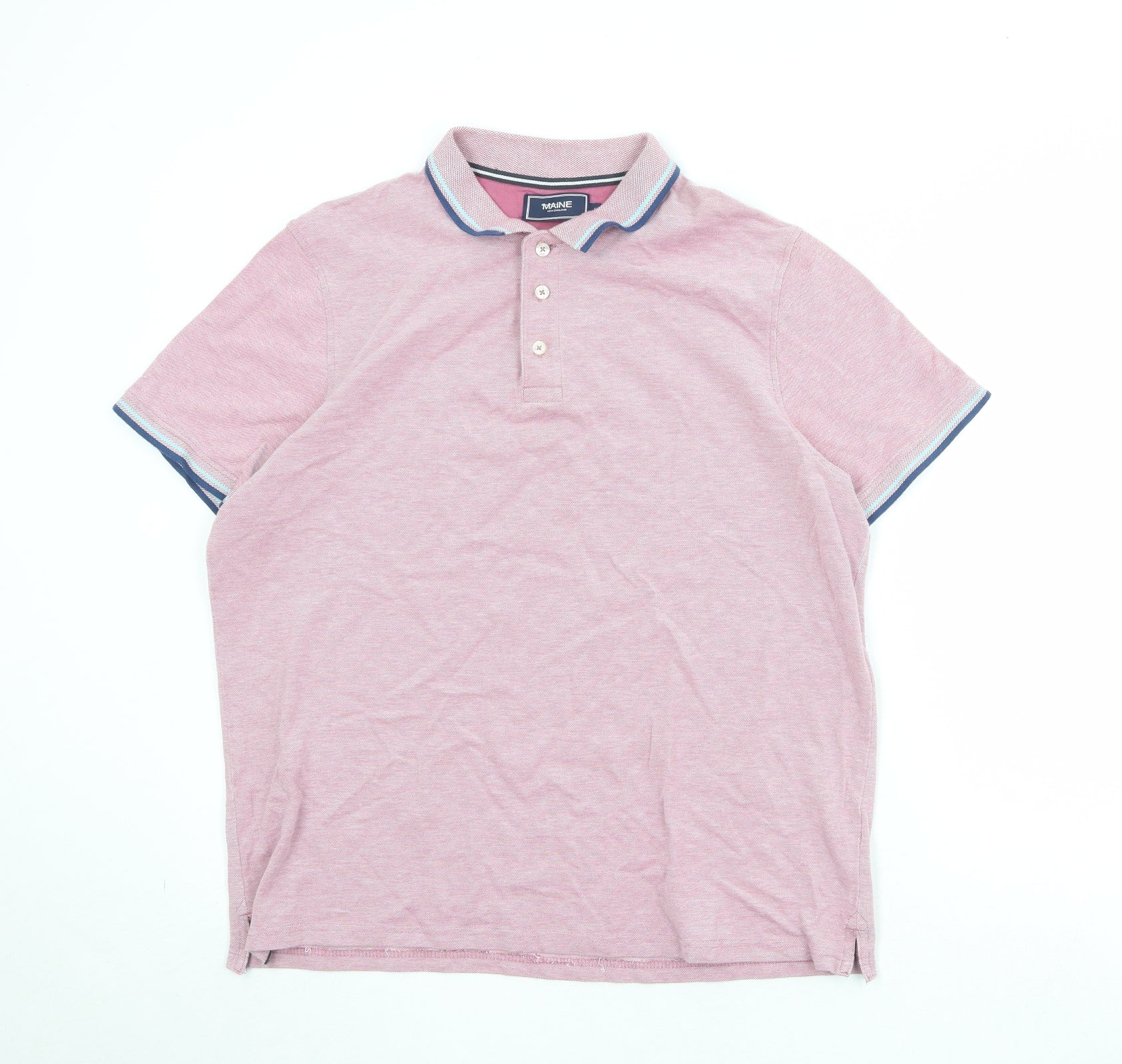 Maine Mens Pink Polyester Polo Size L Collared Button