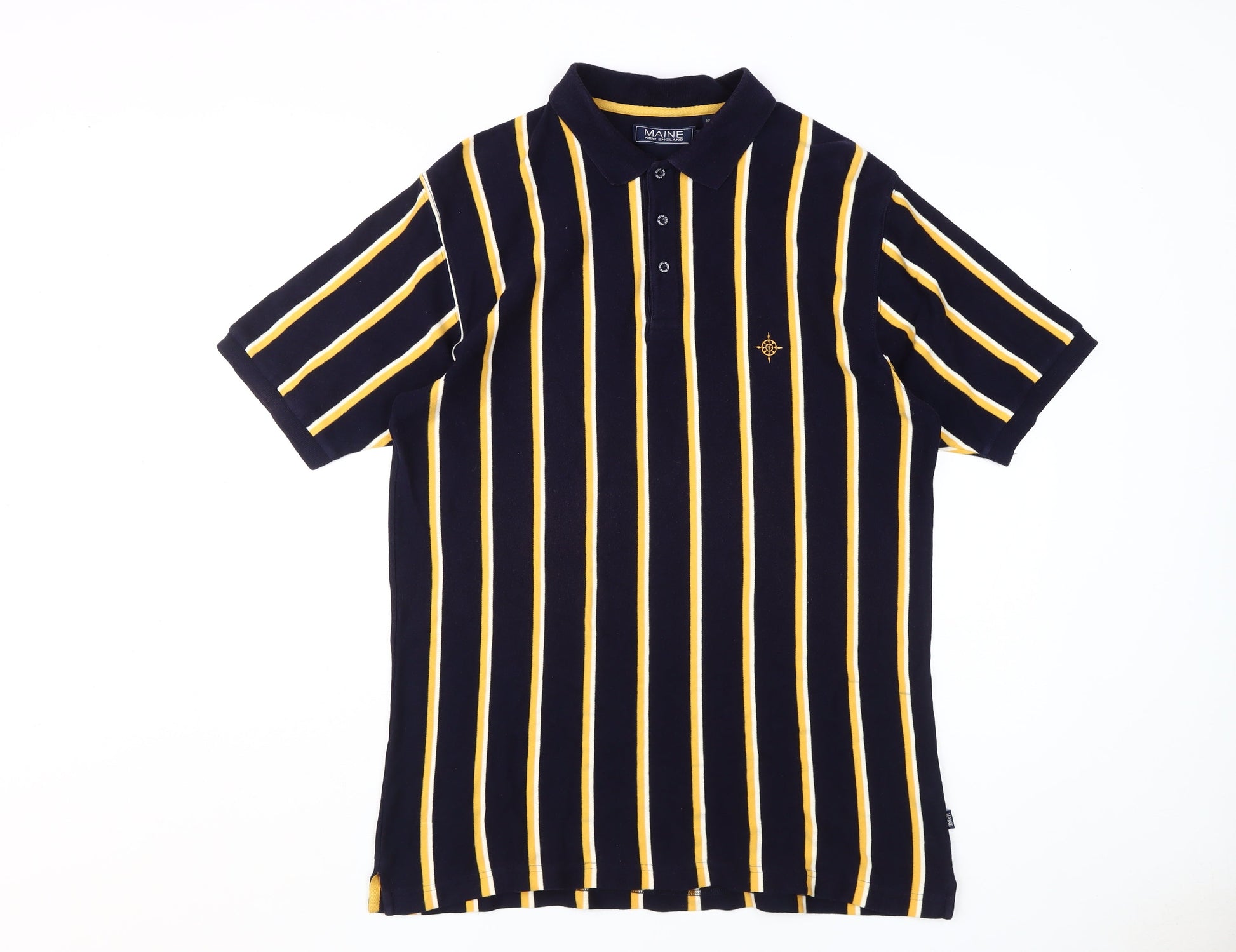 Maine New England Men's Black Striped Polo, Size L
