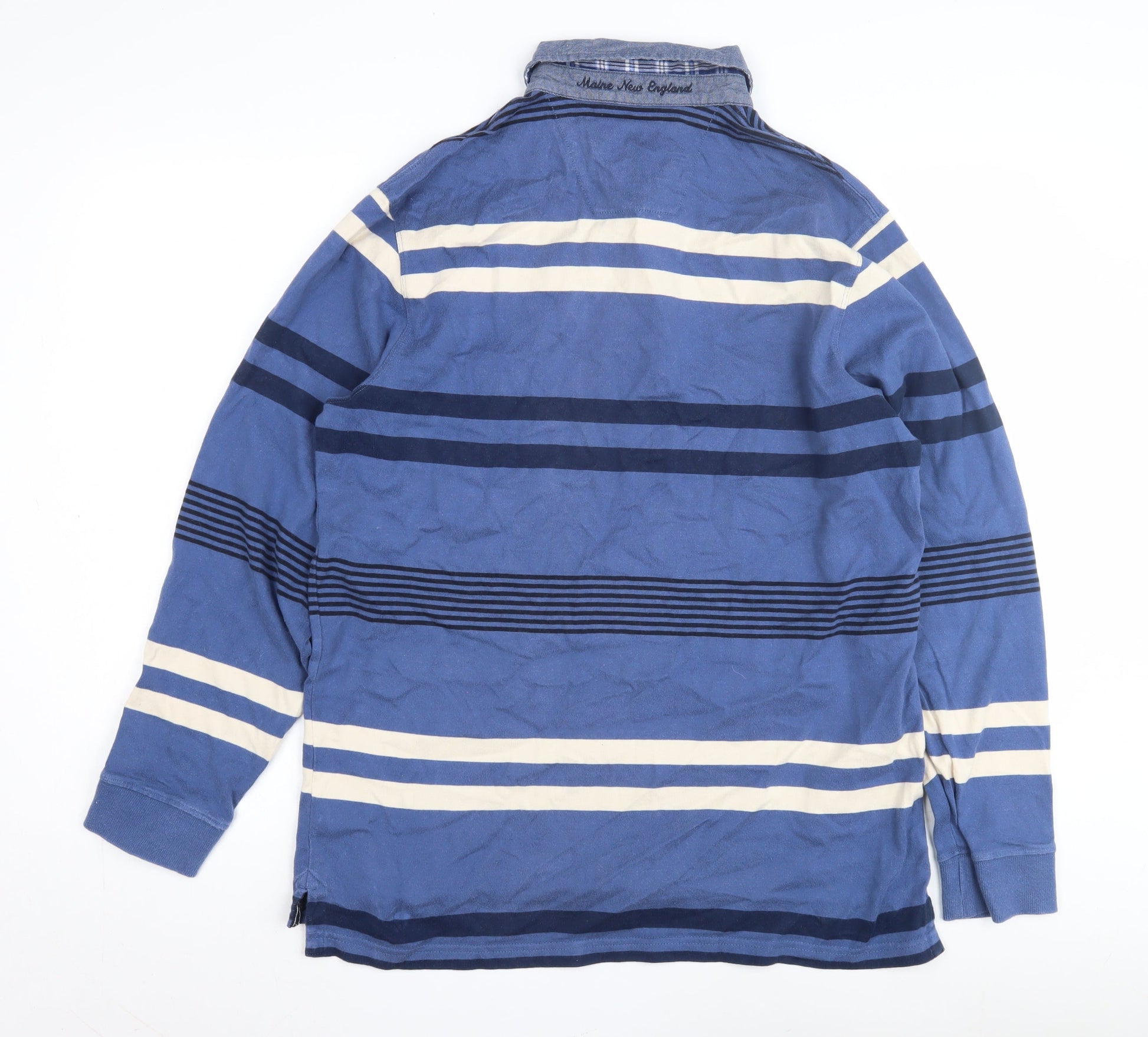 Maine New England Men's Blue M Striped Long Sleeve Polo