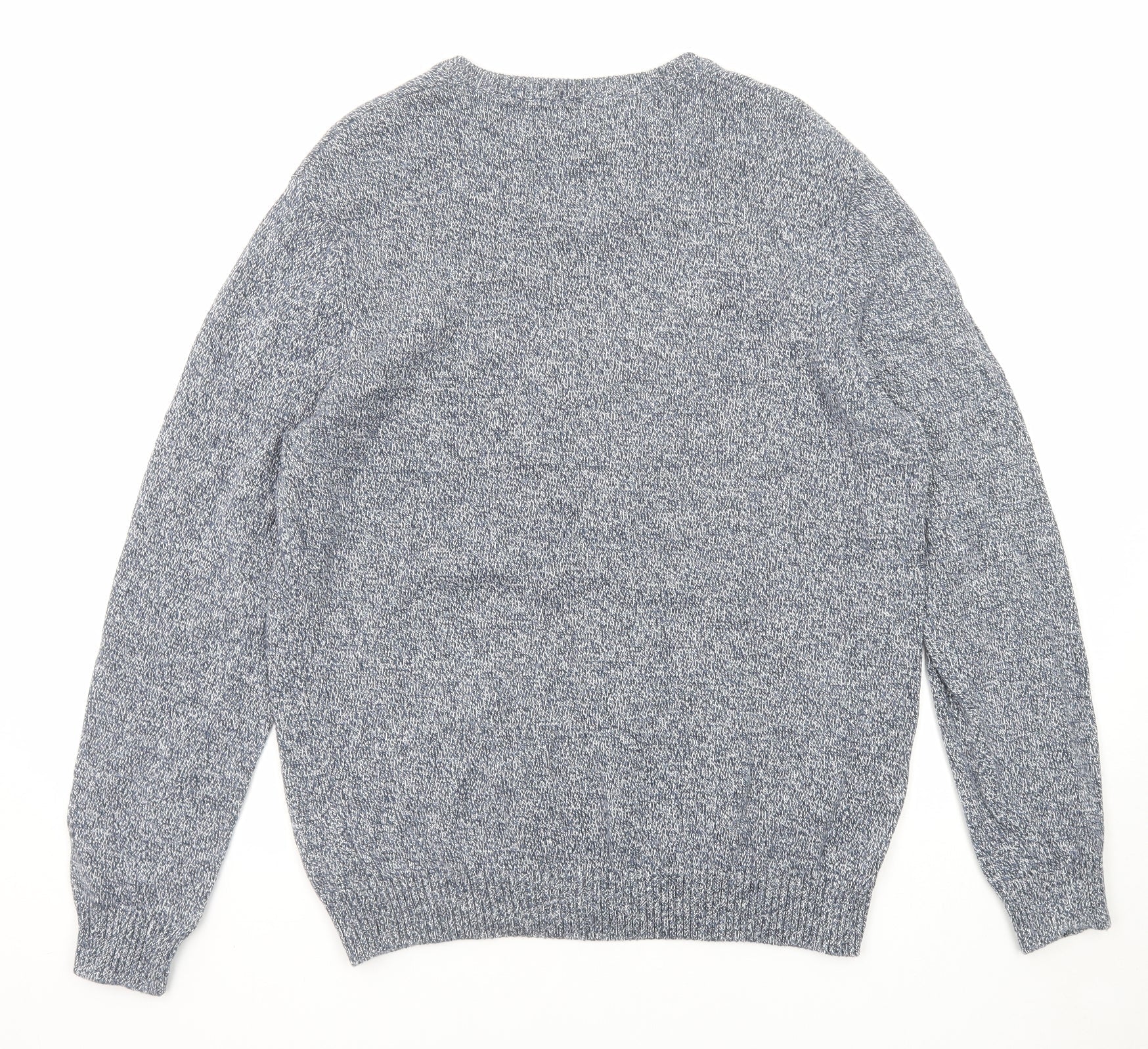 Maine New England Mens Blue V-Neck Cotton Pullover Jumper Size L Long Sleeve
