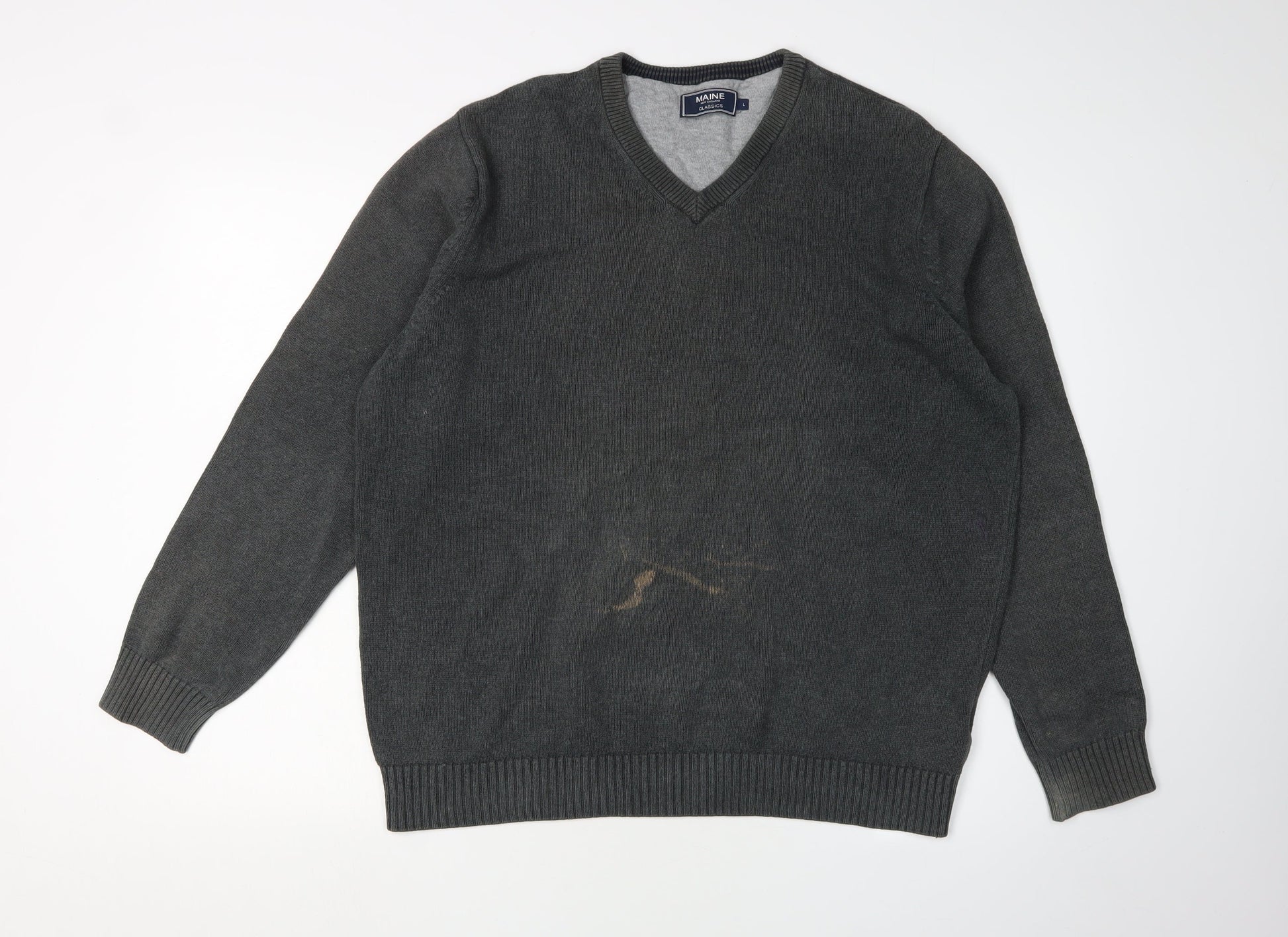 Maine New England Men's Grey V-Neck Pullover Jumper L