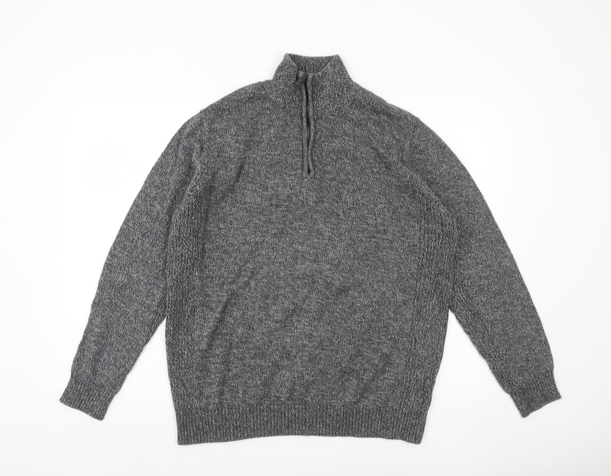 Maine New England Mens Grey Wool Blend 1/4 Zip High Neck Jumper M