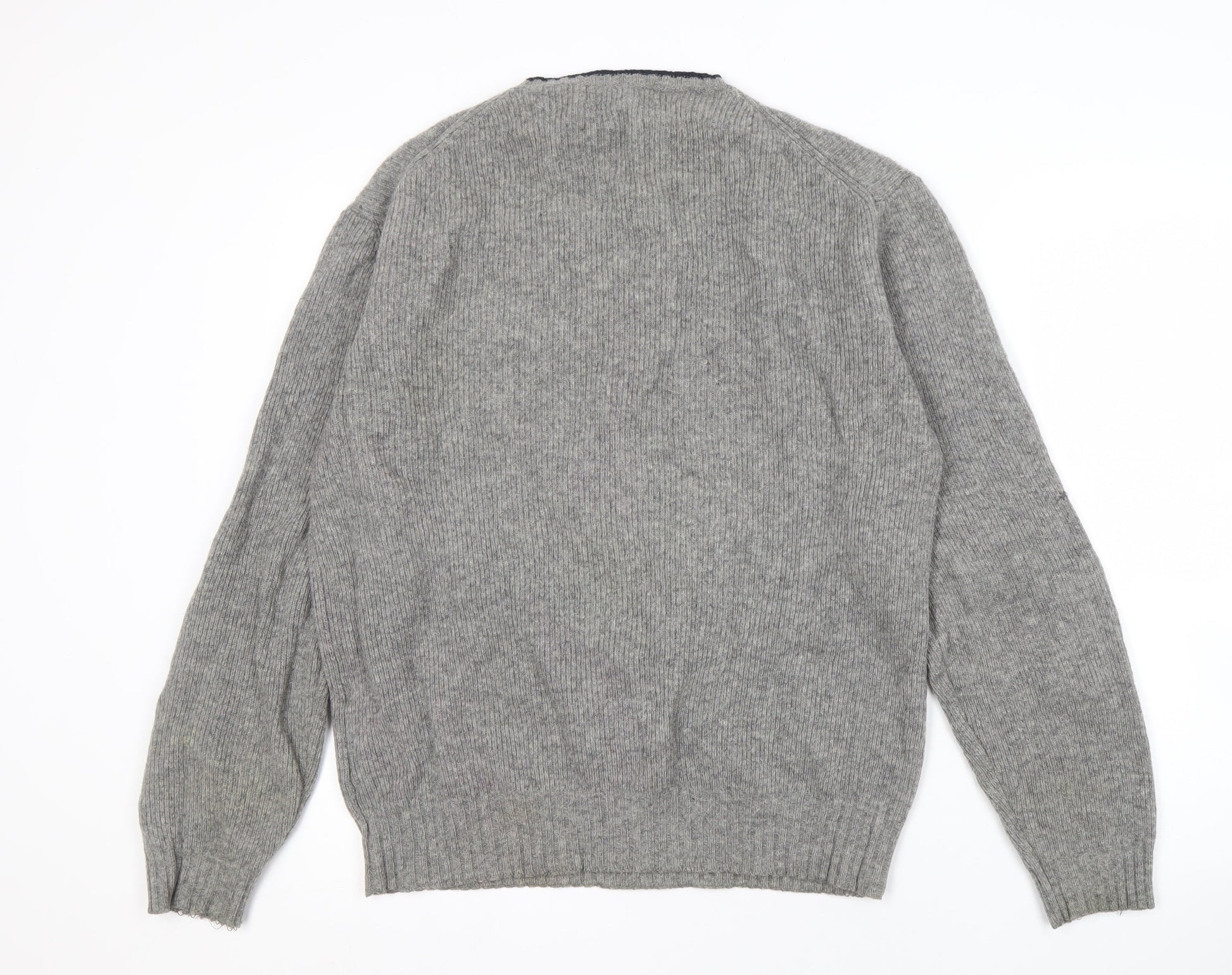 Maine New England Men's Grey Wool V-Neck Jumper M