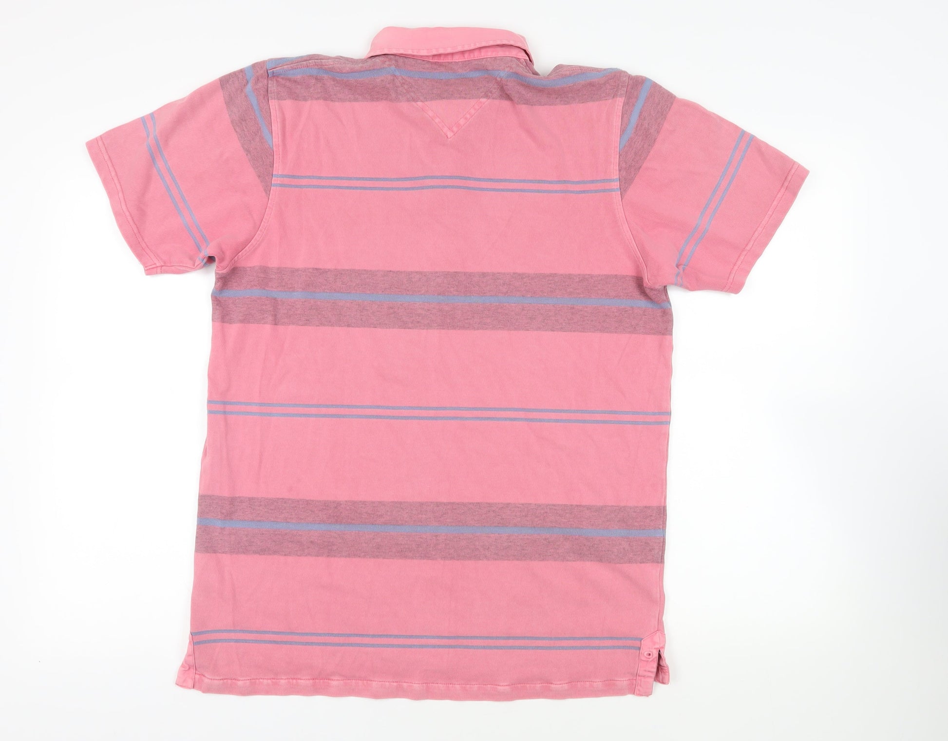 Maine New England Mens Pink Striped Cotton Polo Size M Collared Button