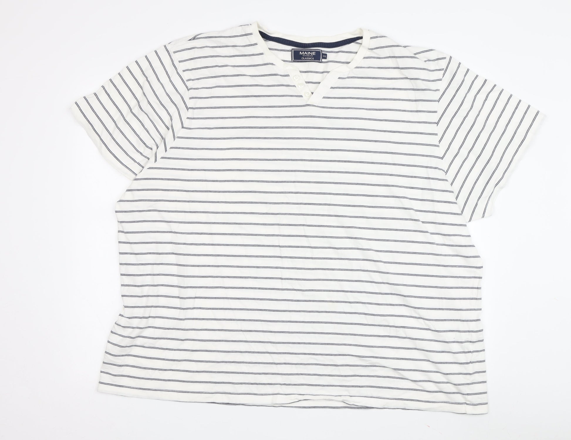 Maine New England Men's XXL White Striped V-Neck T-Shirt