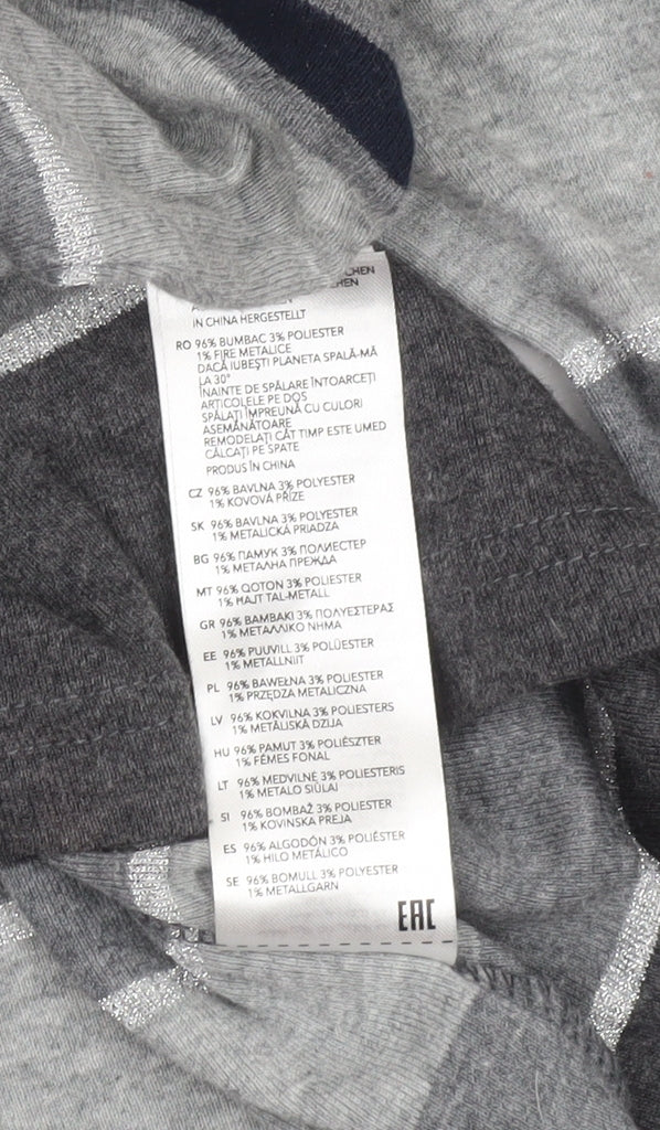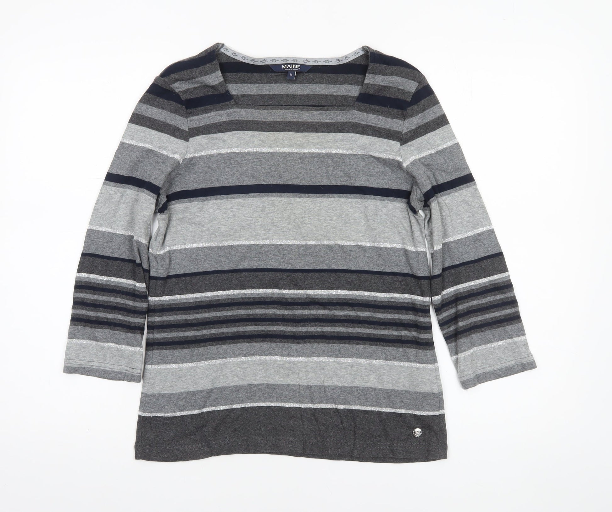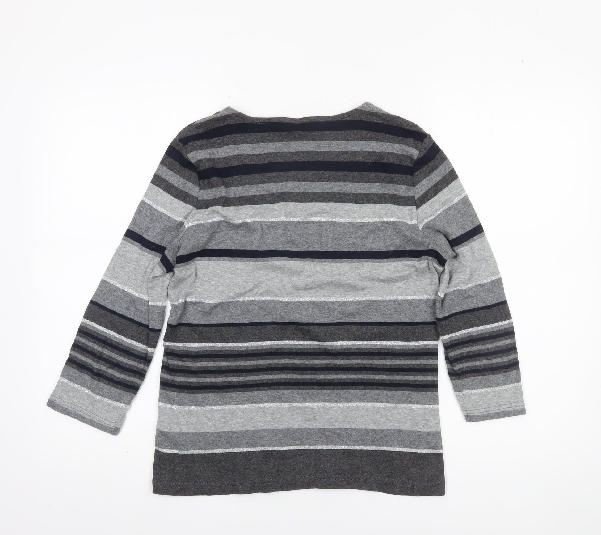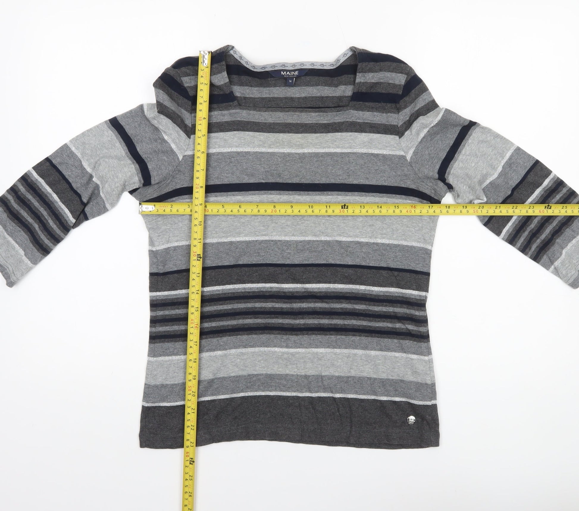 Maine New England Women’s Grey Striped 3/4 Sleeve Cotton Top Size 14