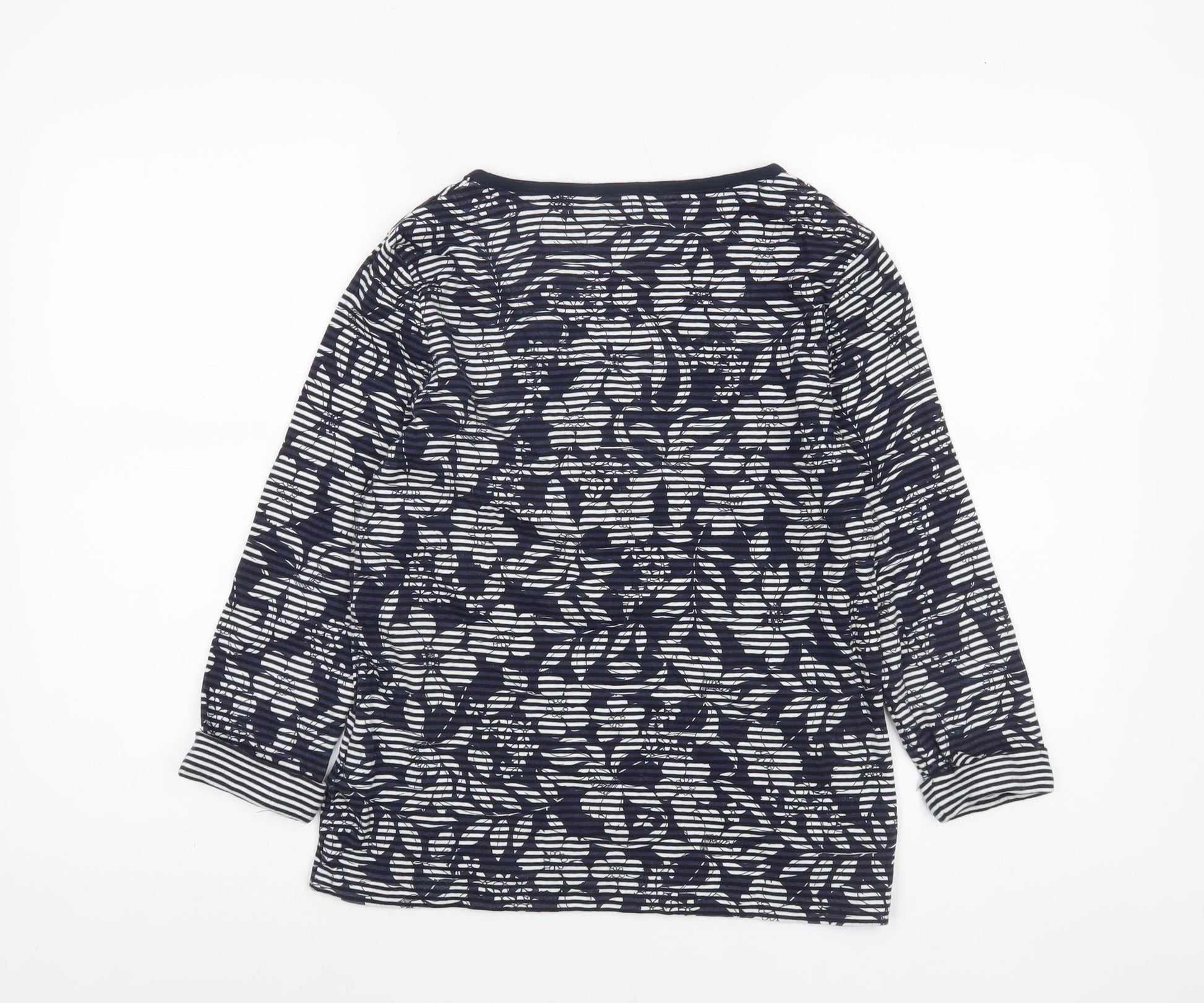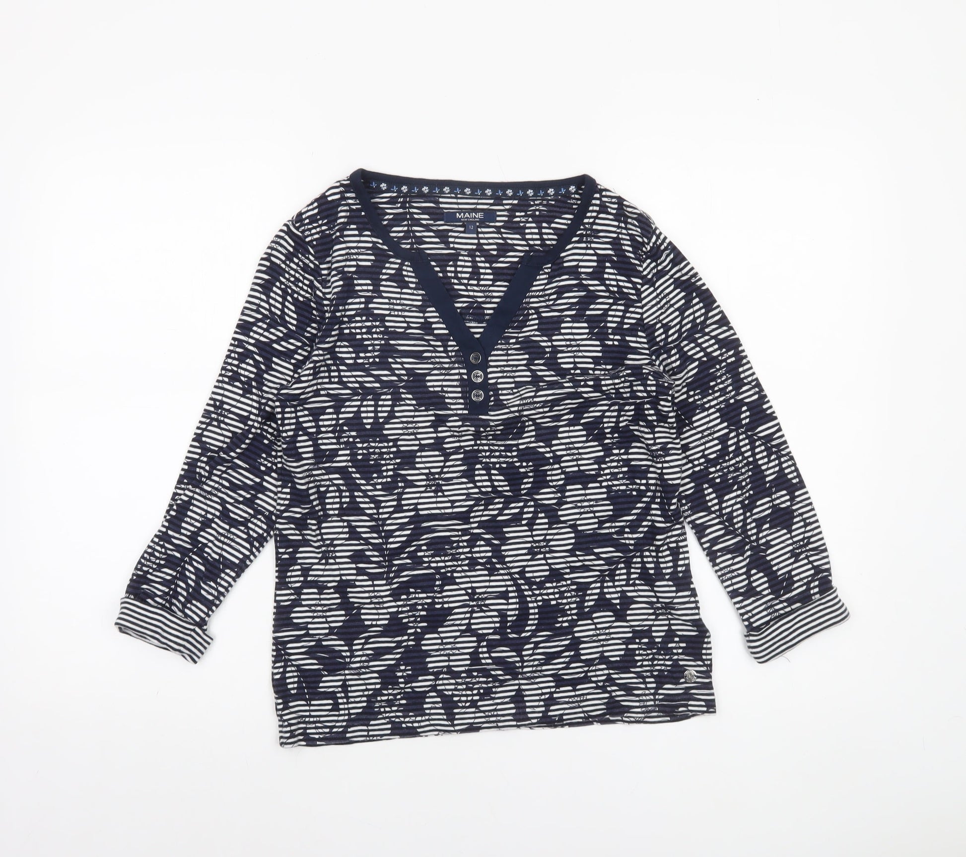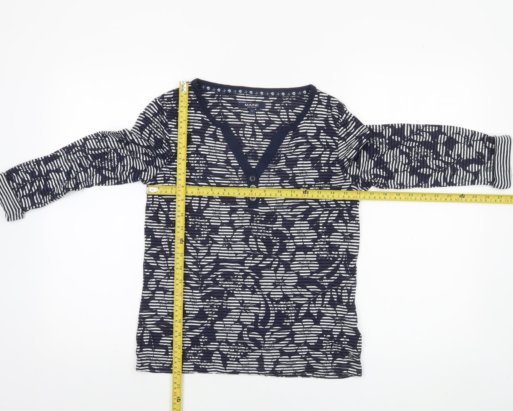 Maine New England Women's Blue Floral 3/4 Sleeve Cotton T-Shirt Size 12