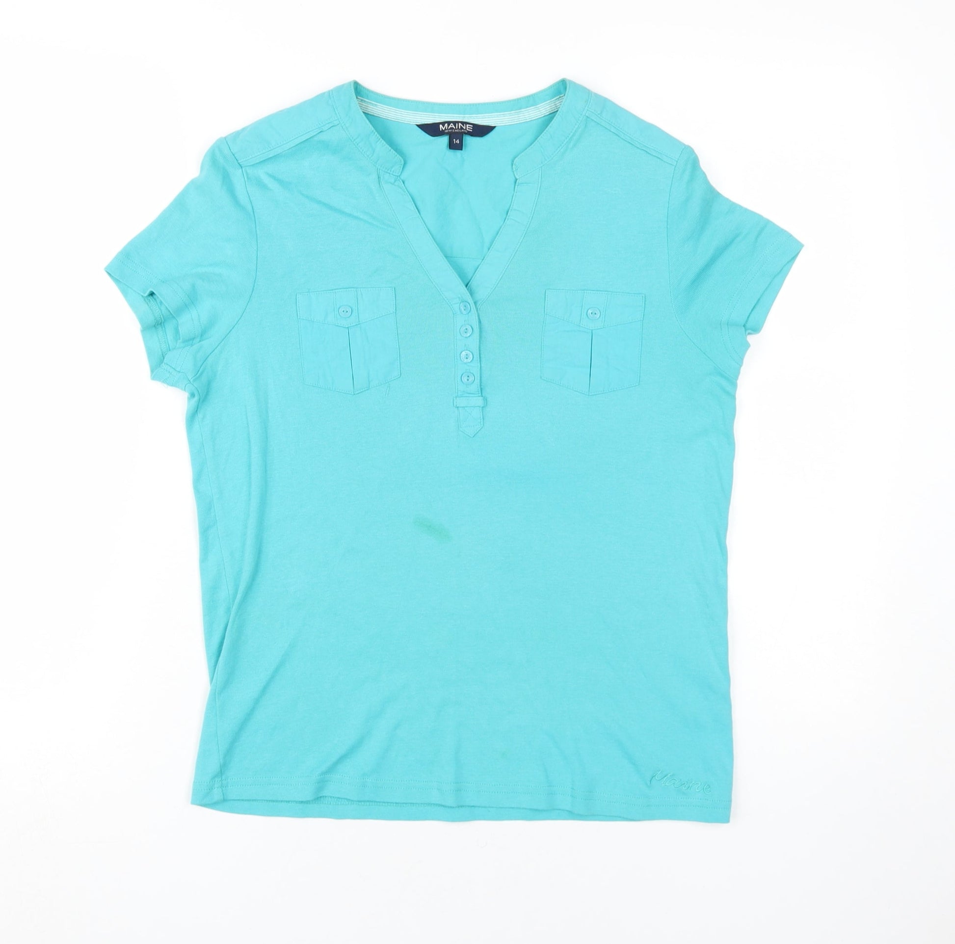 Maine New England Women's Blue Henley T-Shirt Size 14