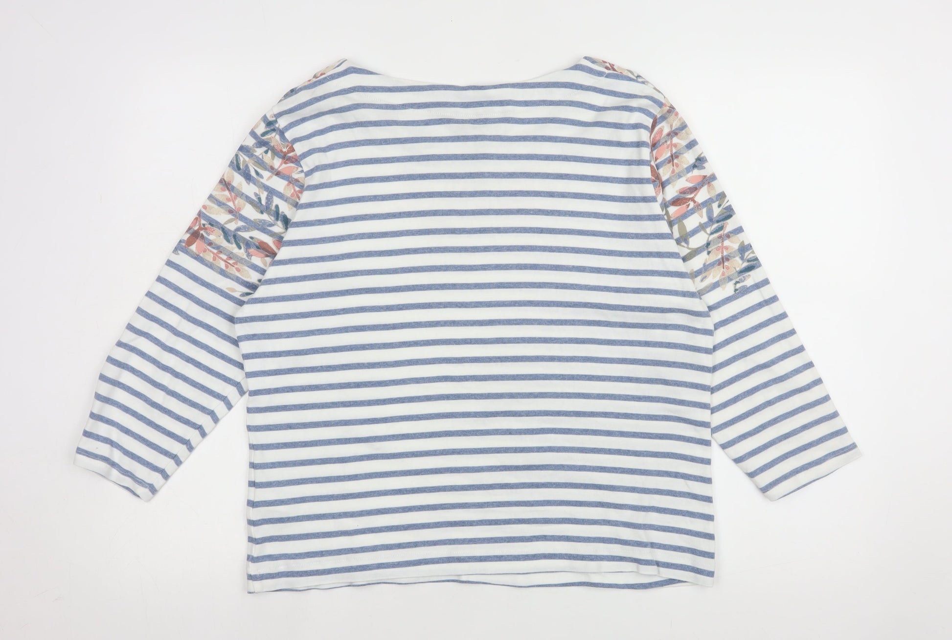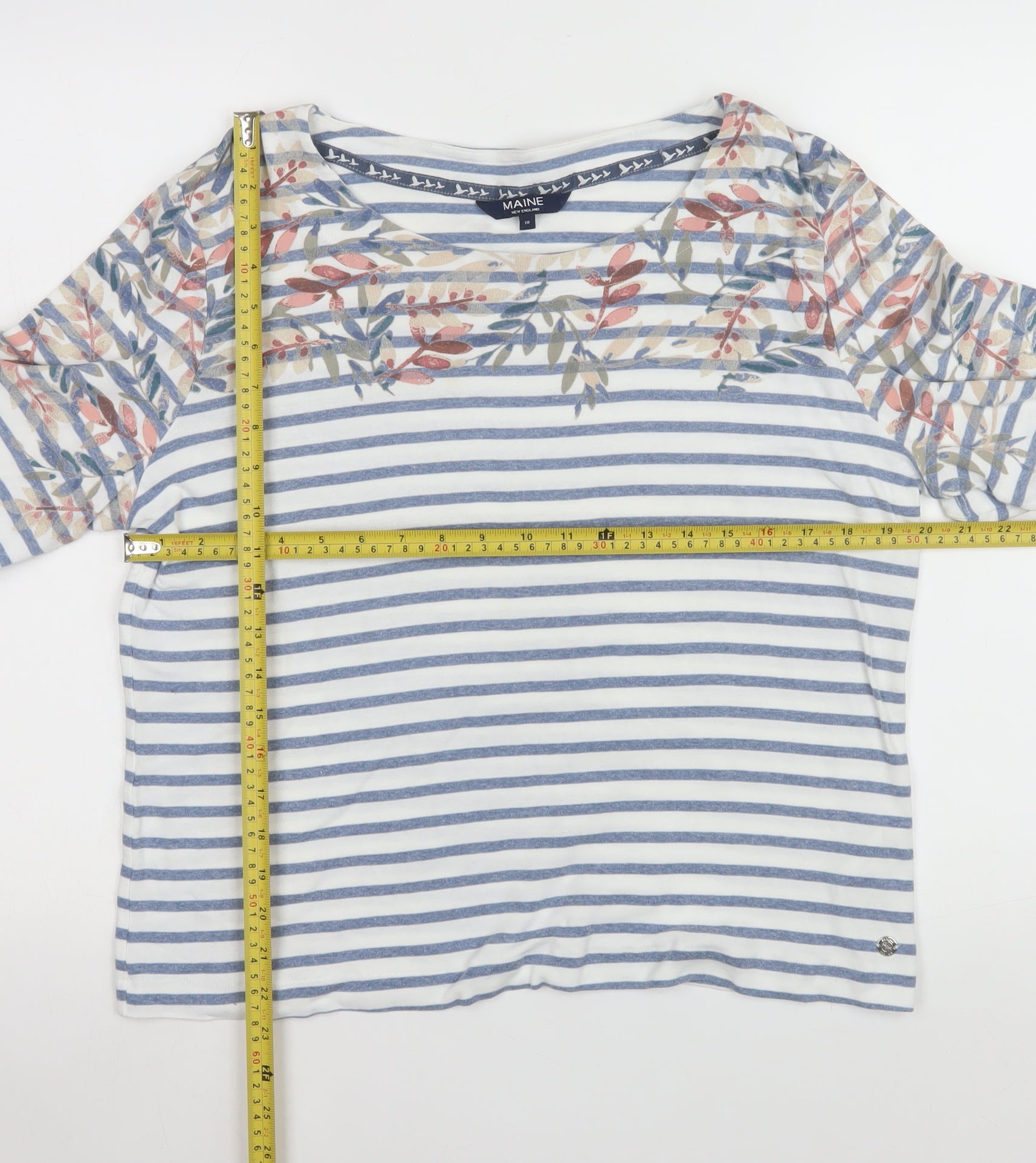 Maine New England Women's Blue Striped Boat Neck 3/4 Sleeve T-Shirt Size 18