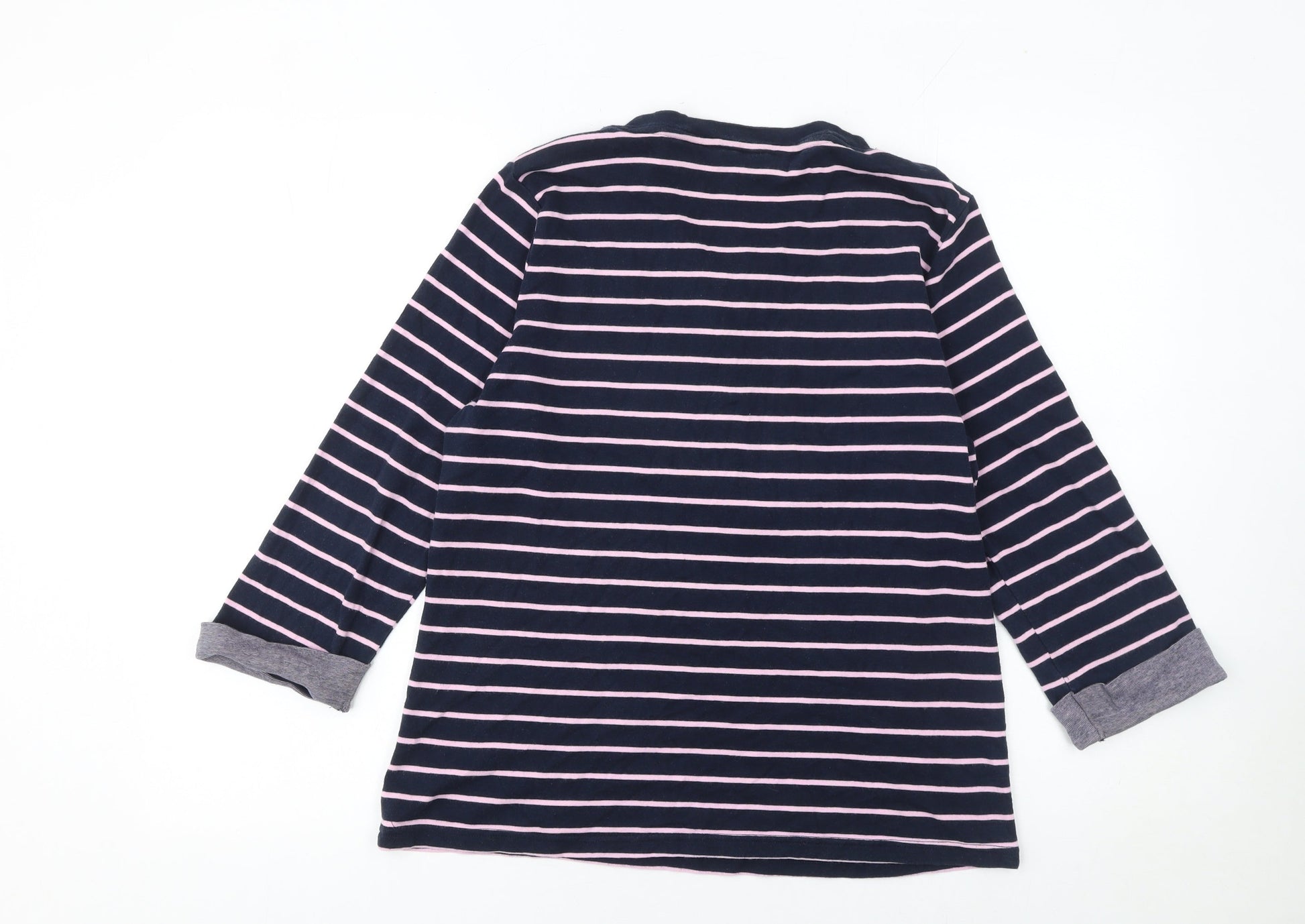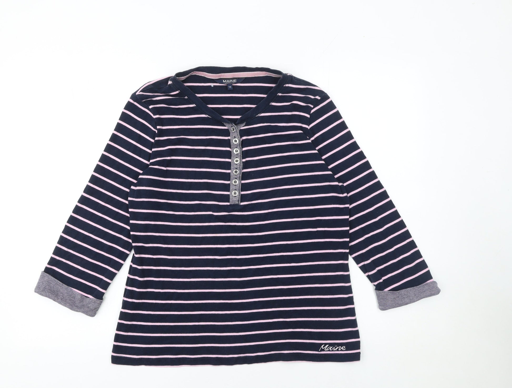 Maine New England Women's Blue Striped Long Sleeve Henley T-Shirt Size 16
