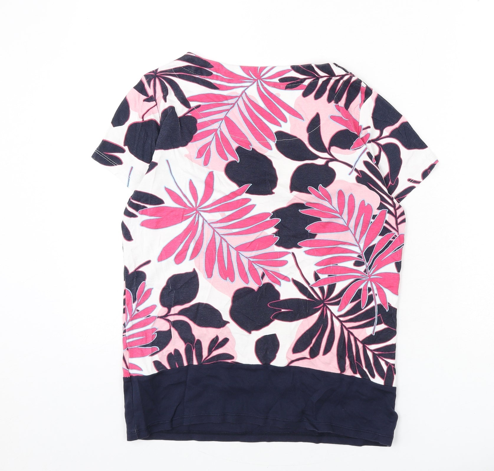 Maine New England Womens Multicoloured Geometric Cotton Basic T-Shirt Size 12 Round Neck - Leaf Print