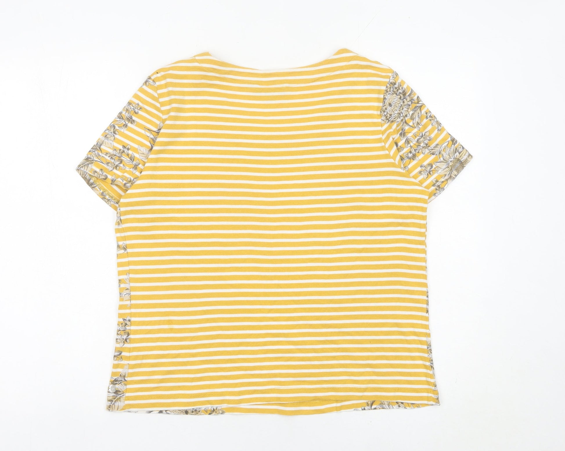 Maine New England Women's Yellow Stripe Floral Cotton T-Shirt Size 18