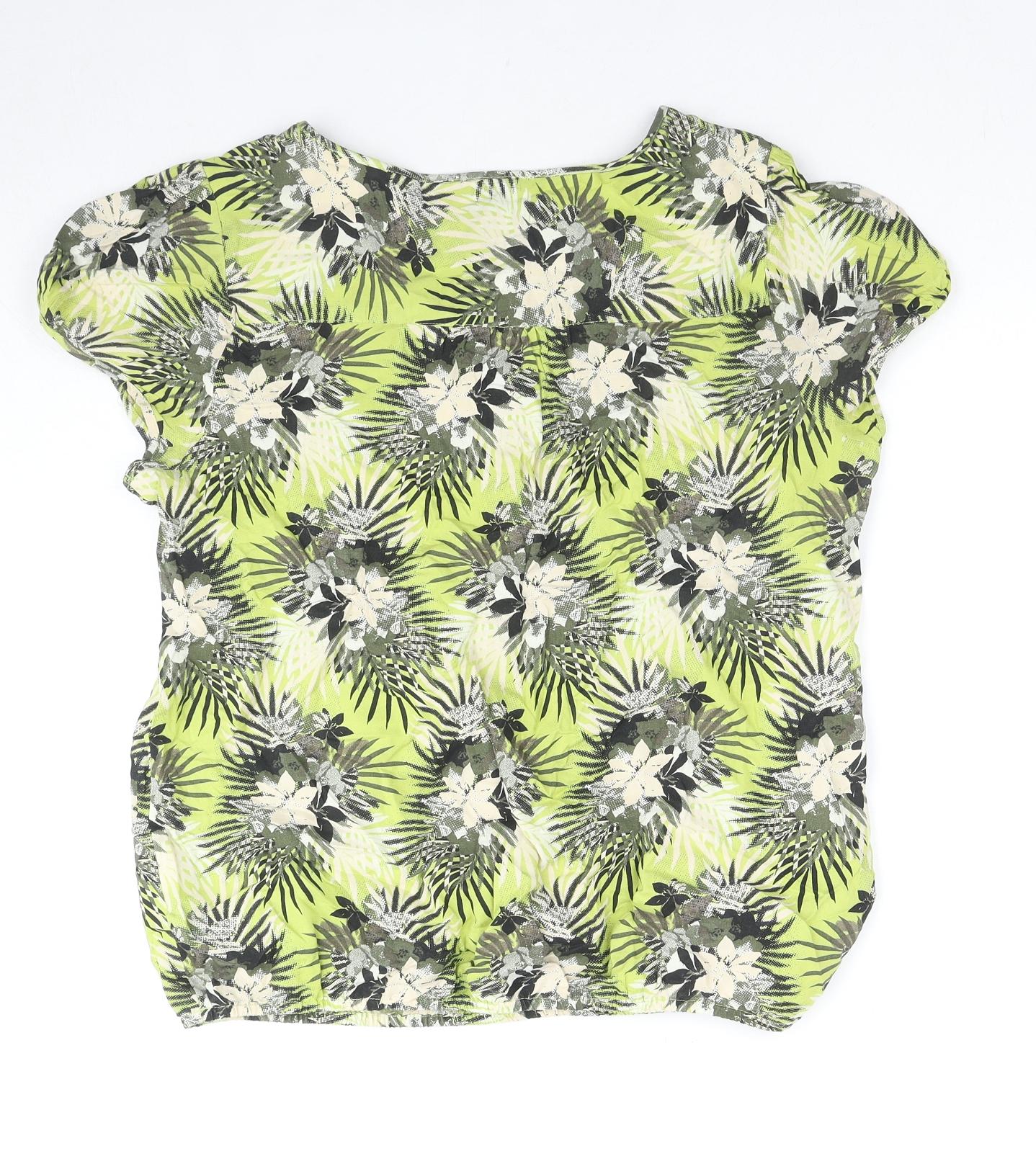 Maine Womens Green Floral Cotton Basic T-Shirt Size 10 V-Neck