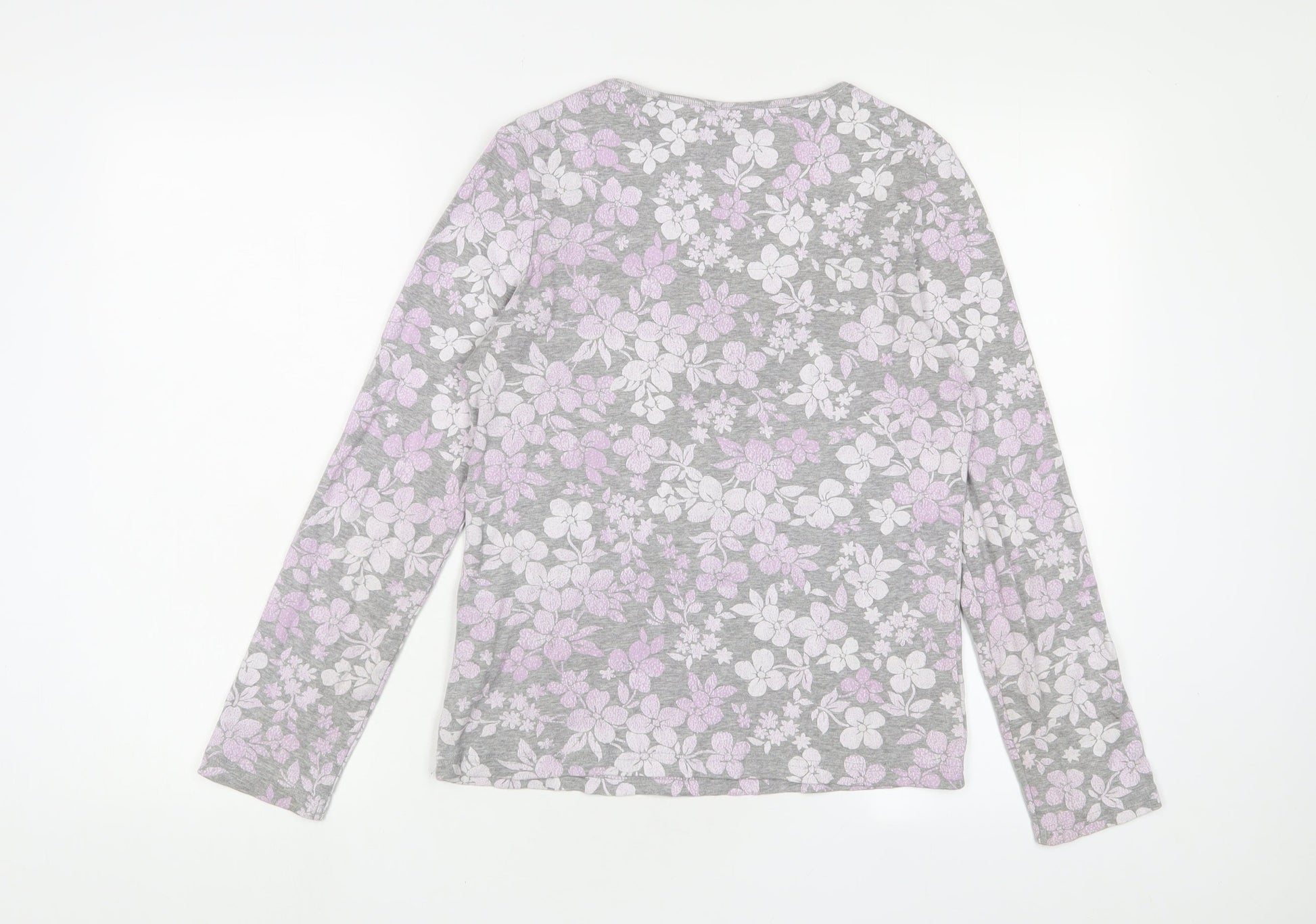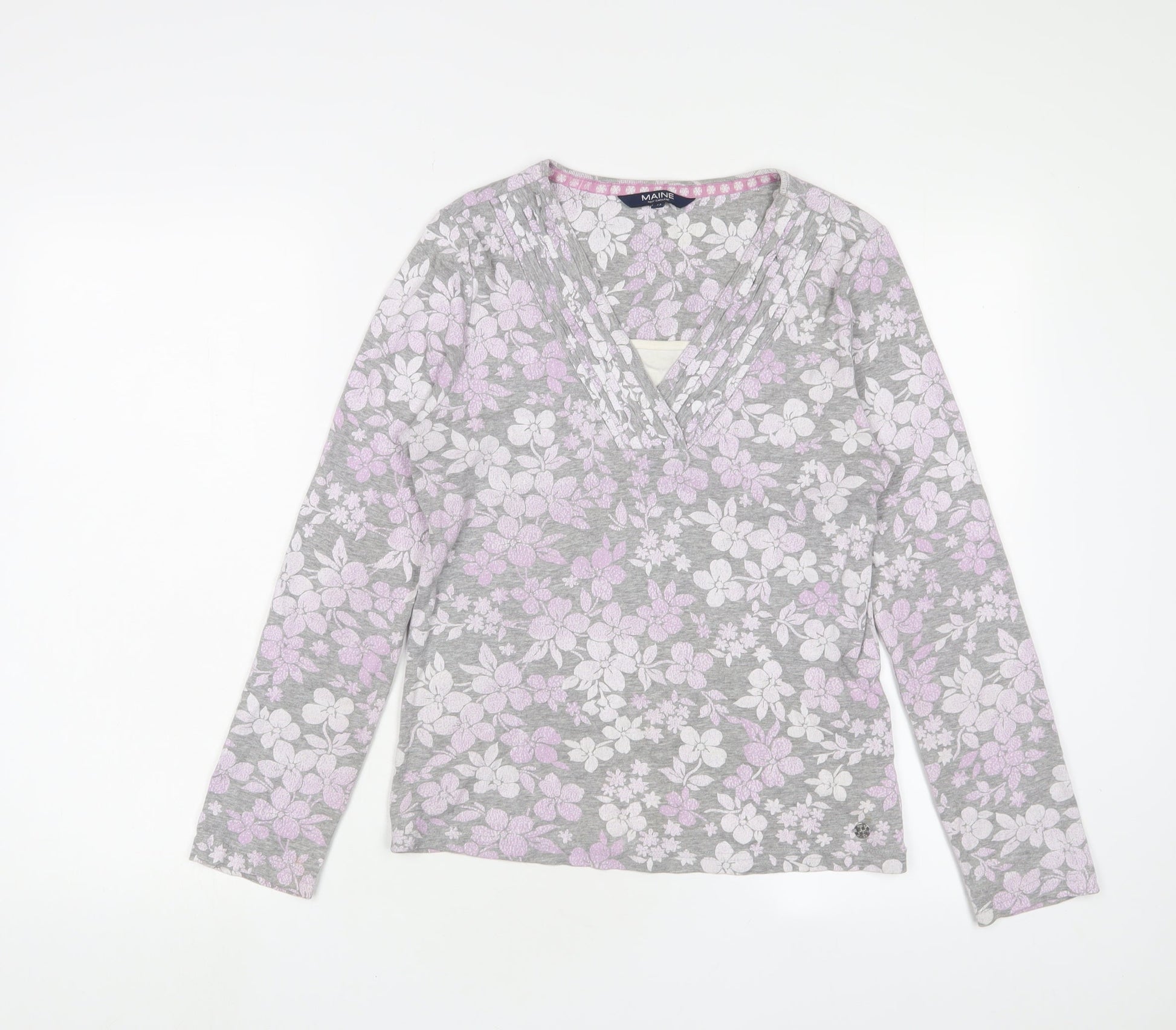 Maine Womens Grey Floral Cotton Basic T-Shirt Size 12 V-Neck