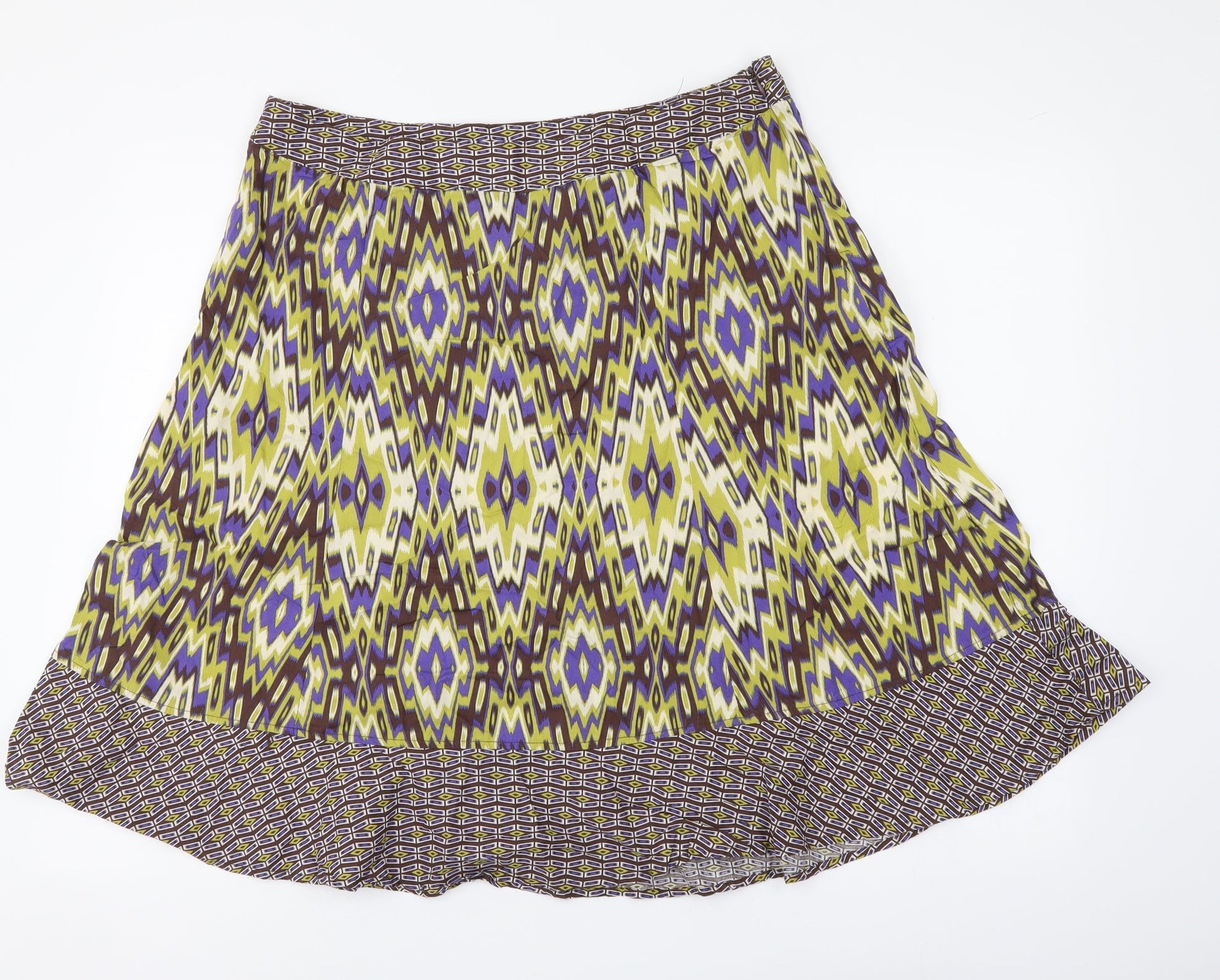 Maine Womens Multicoloured Geometric Cotton A-Line Skirt Size 16 Zip