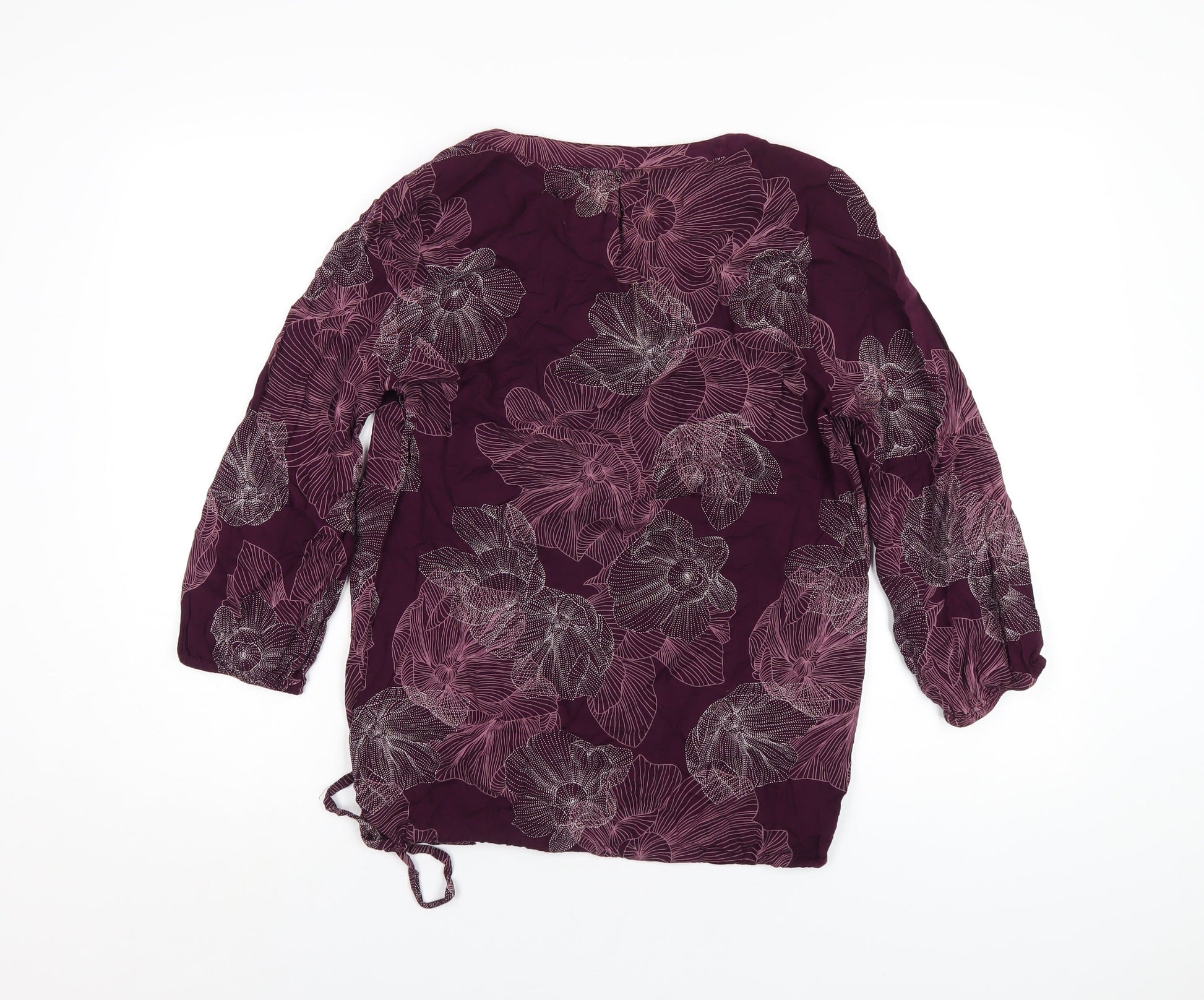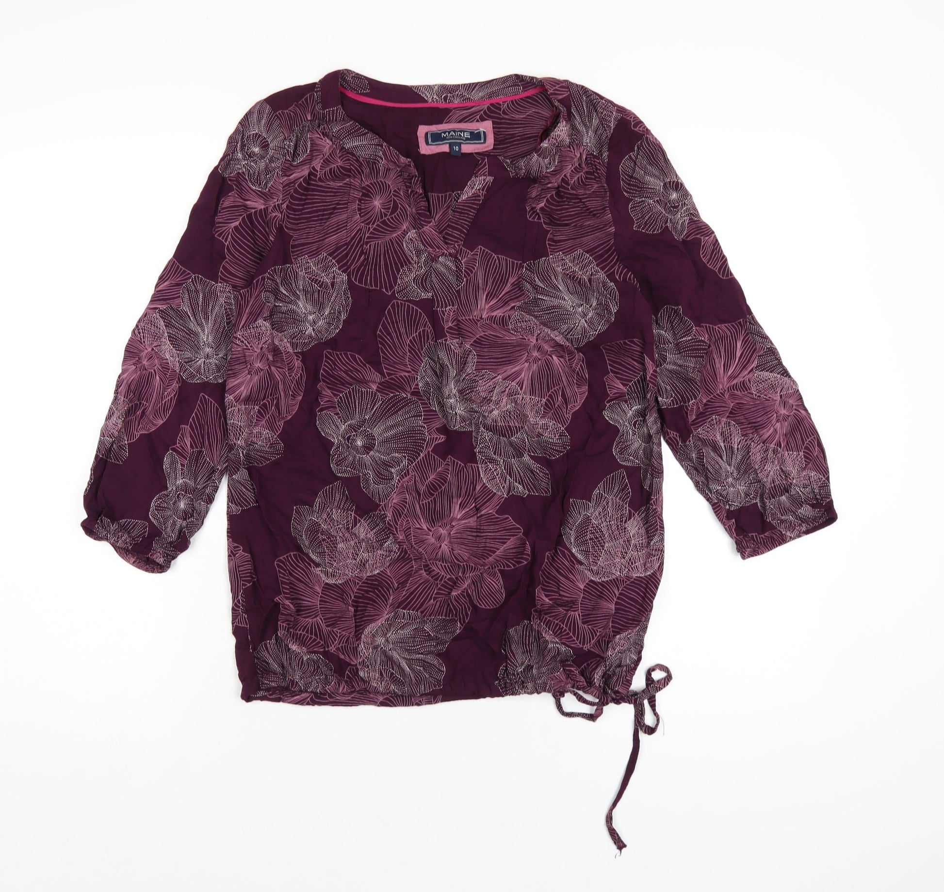 Maine Womens Purple Geometric Viscose Basic T-Shirt Size 10 V-Neck