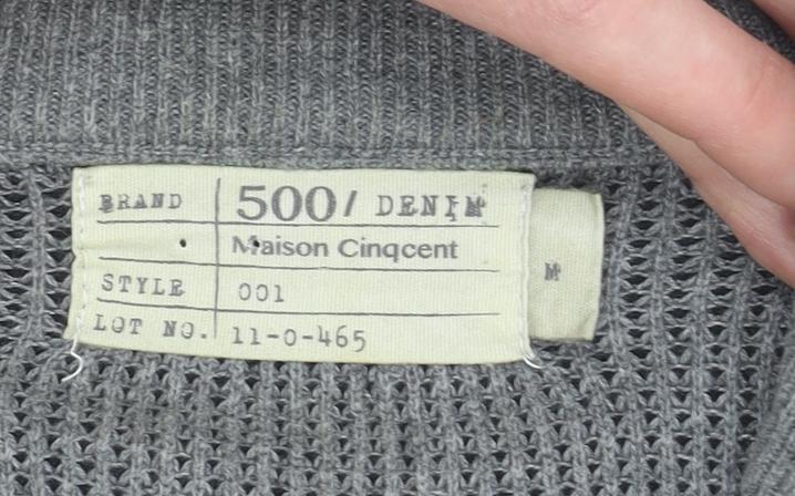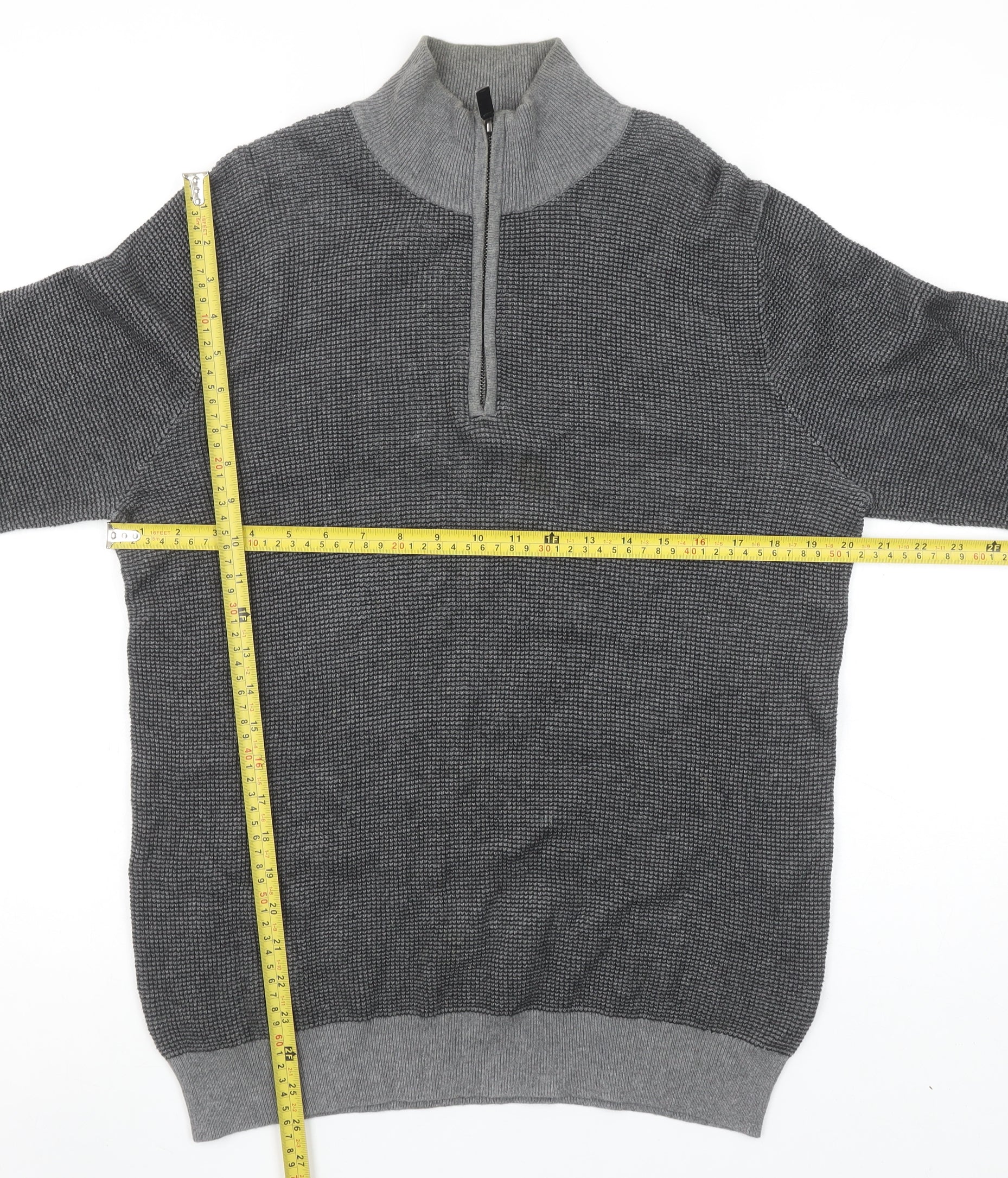 Maison Cinqcent Men's Grey Cotton 1/4 Zip High Neck Jumper Size M