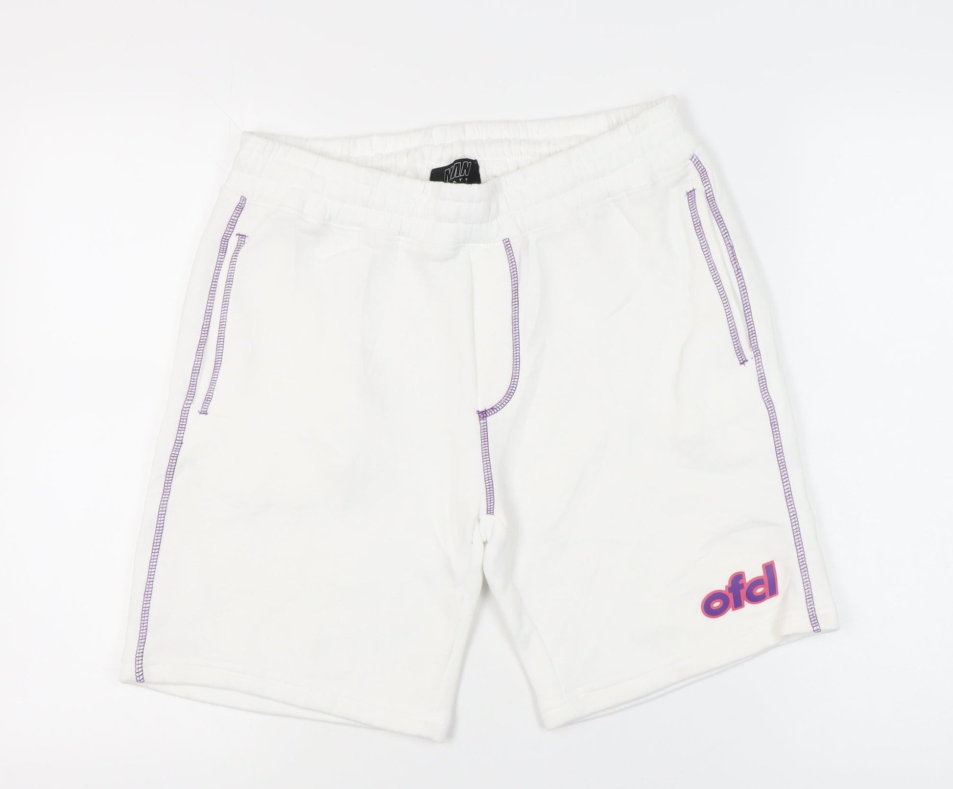 MAN Skate Mens White Sweat Shorts M Elastic Waist Casual