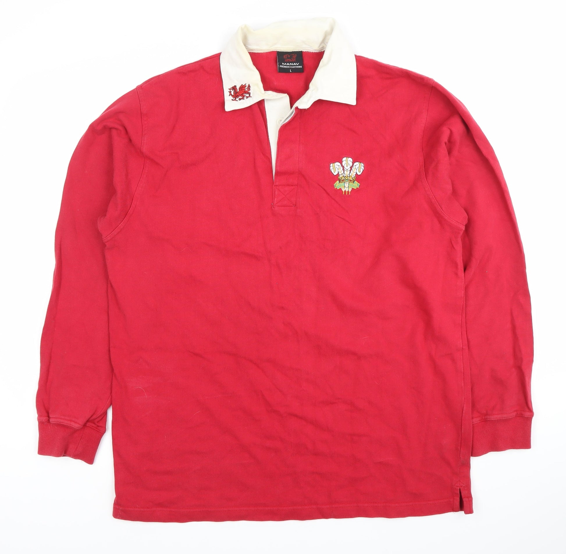 Manav Men's Red Long Sleeve Polo Shirt - Size L