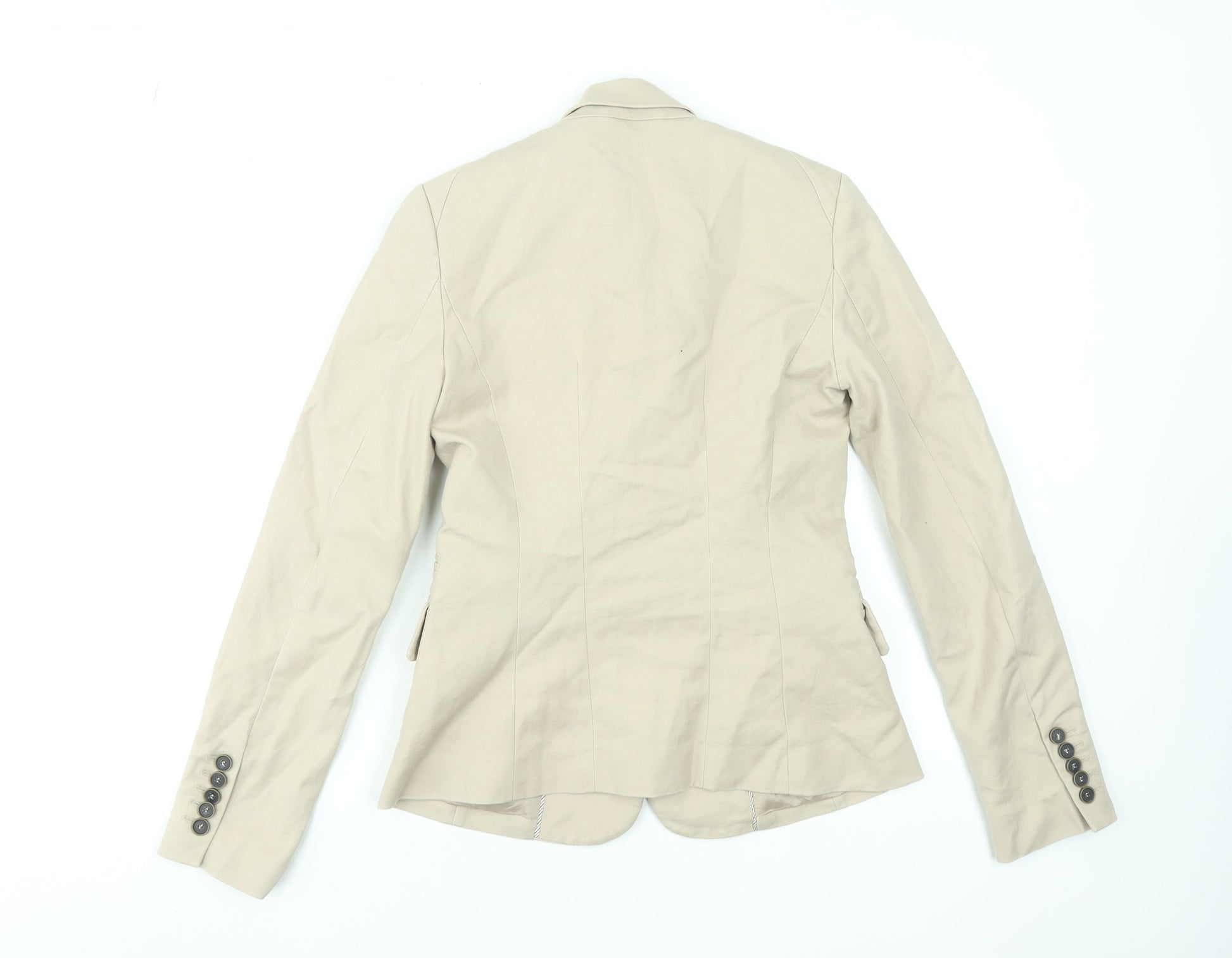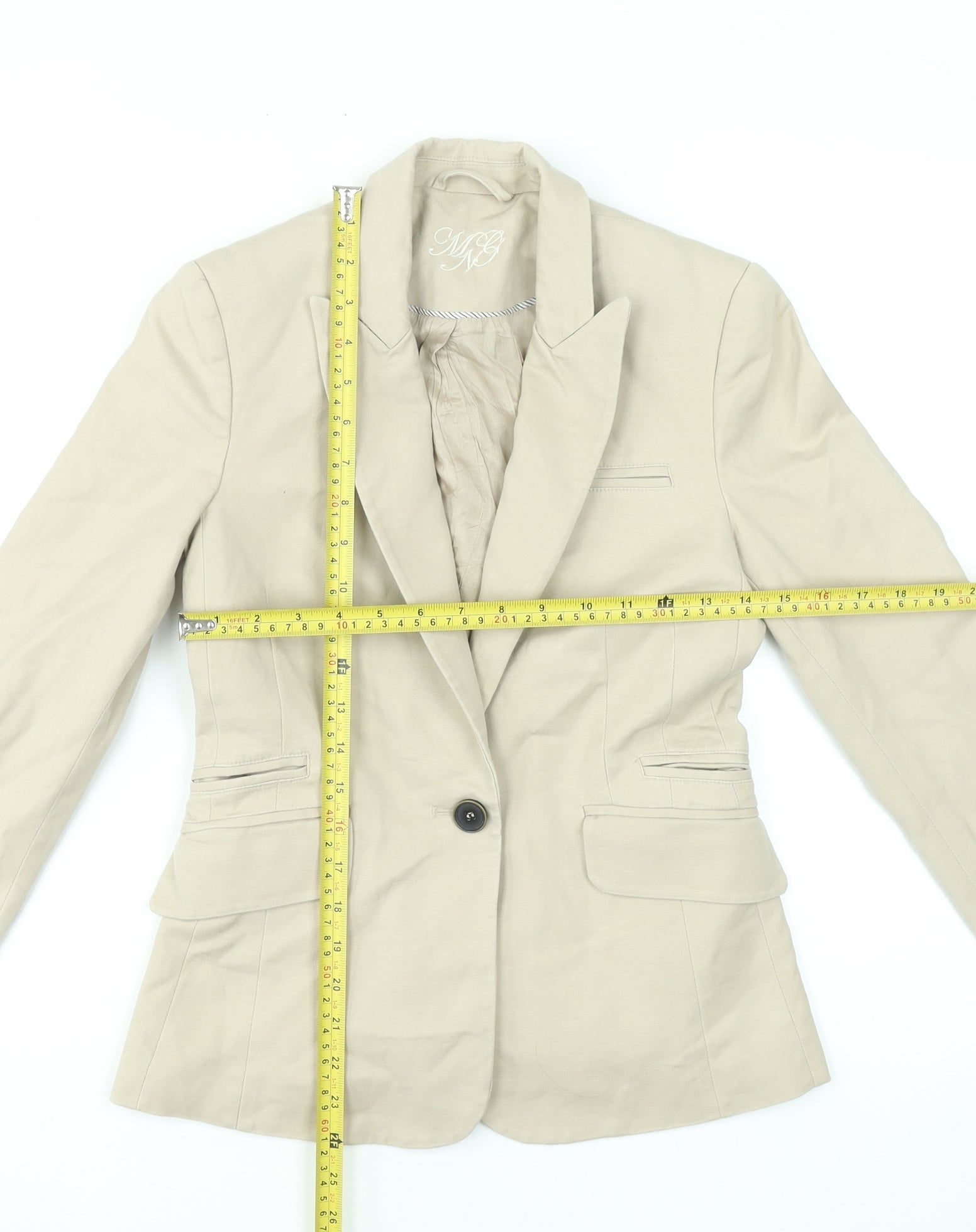 Mango Beige Cotton Blend Single-Breasted Blazer Women's UK 8