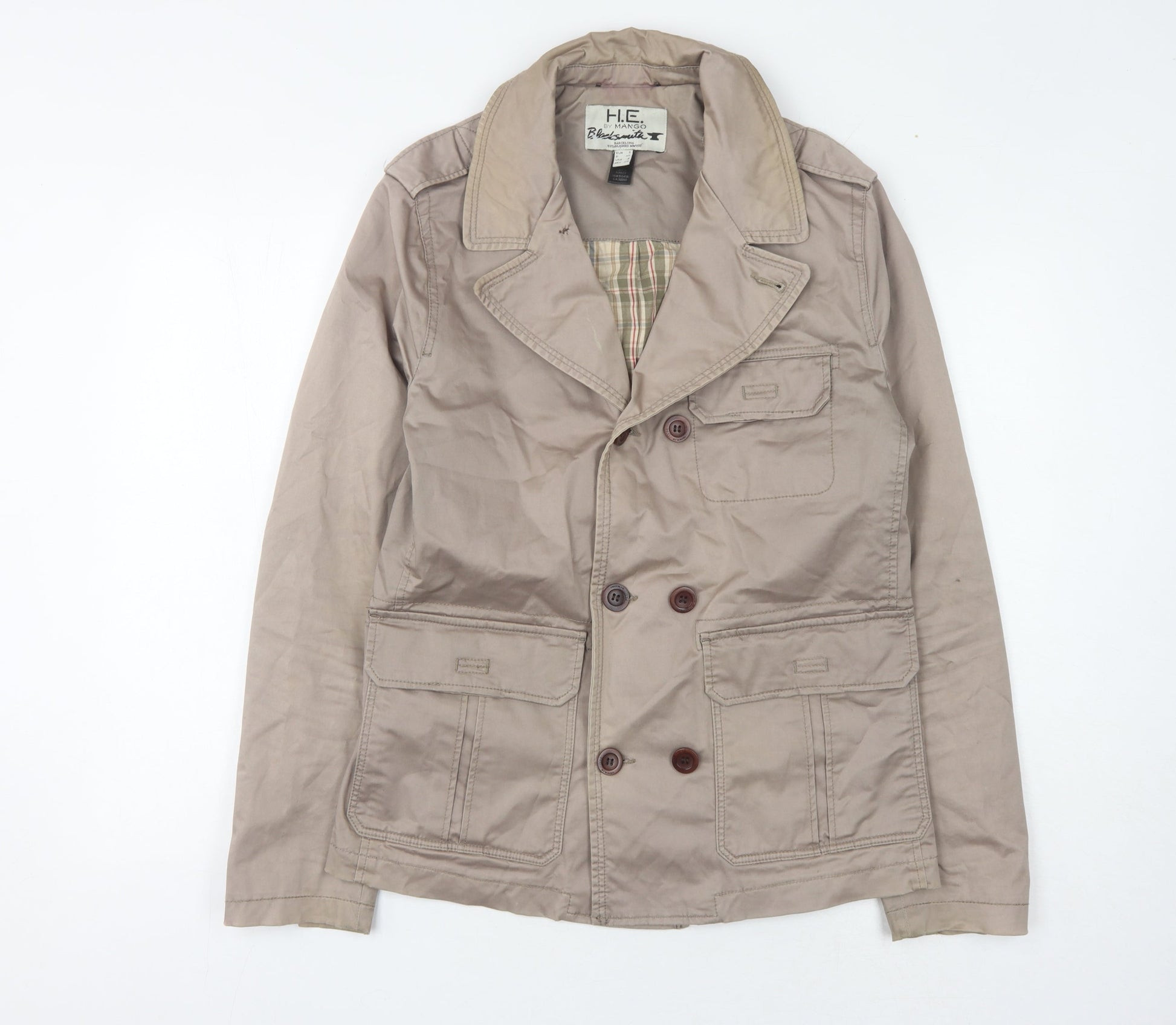 Mango Beige Unisex Jacket XS Double-Breasted Casual