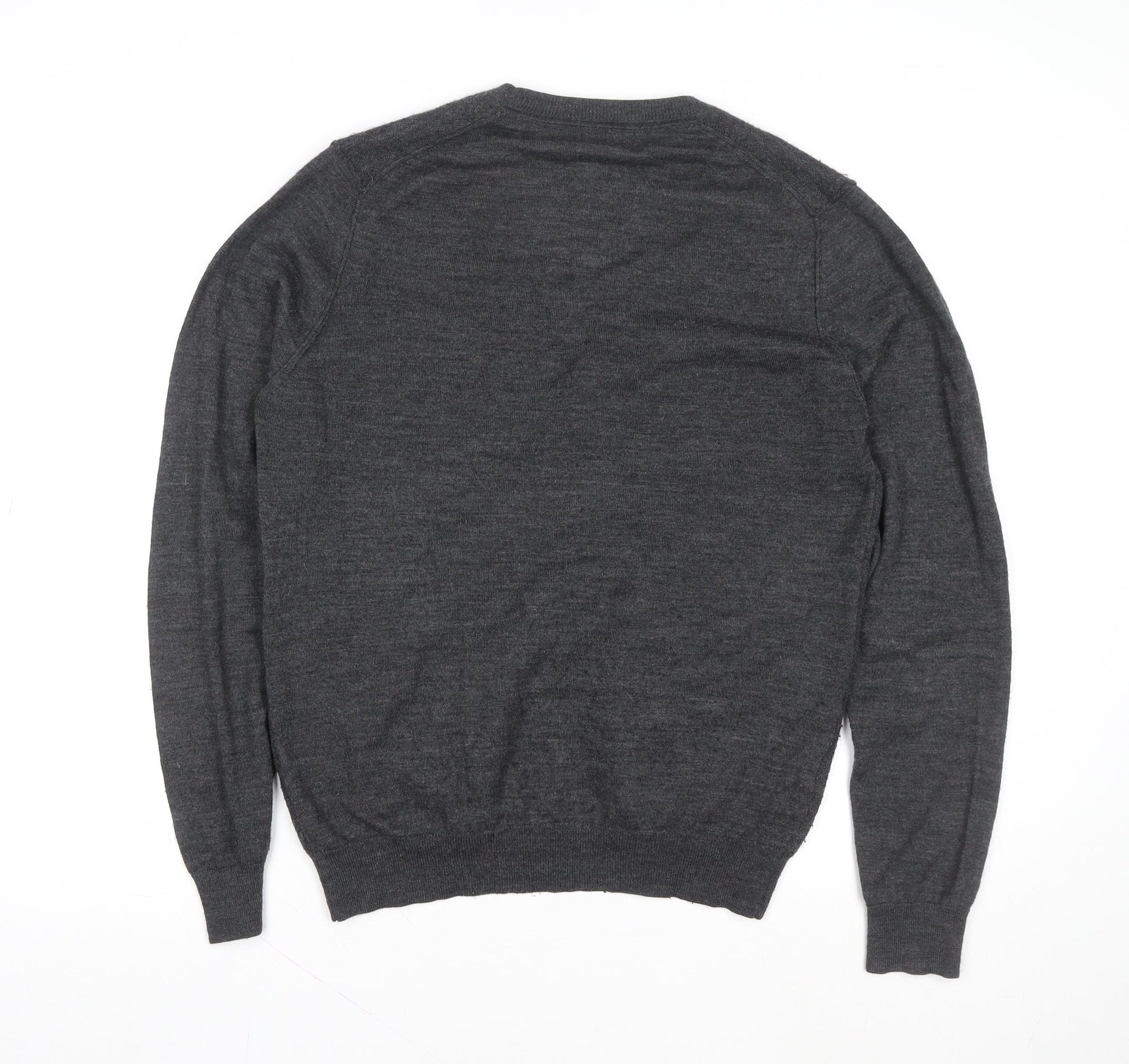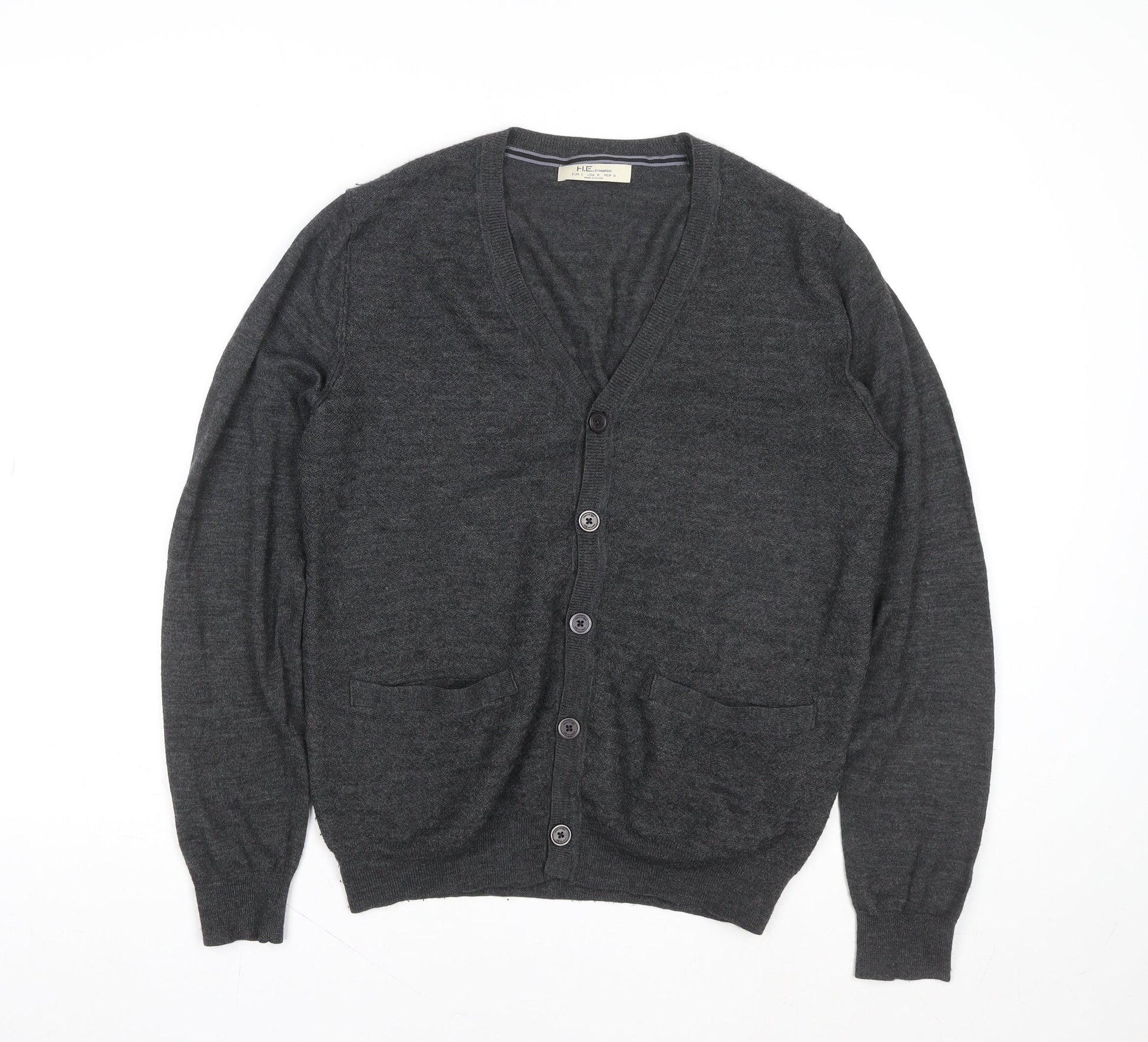 Mango Men Grey Wool Cardigan L V-Neck Classic Knit