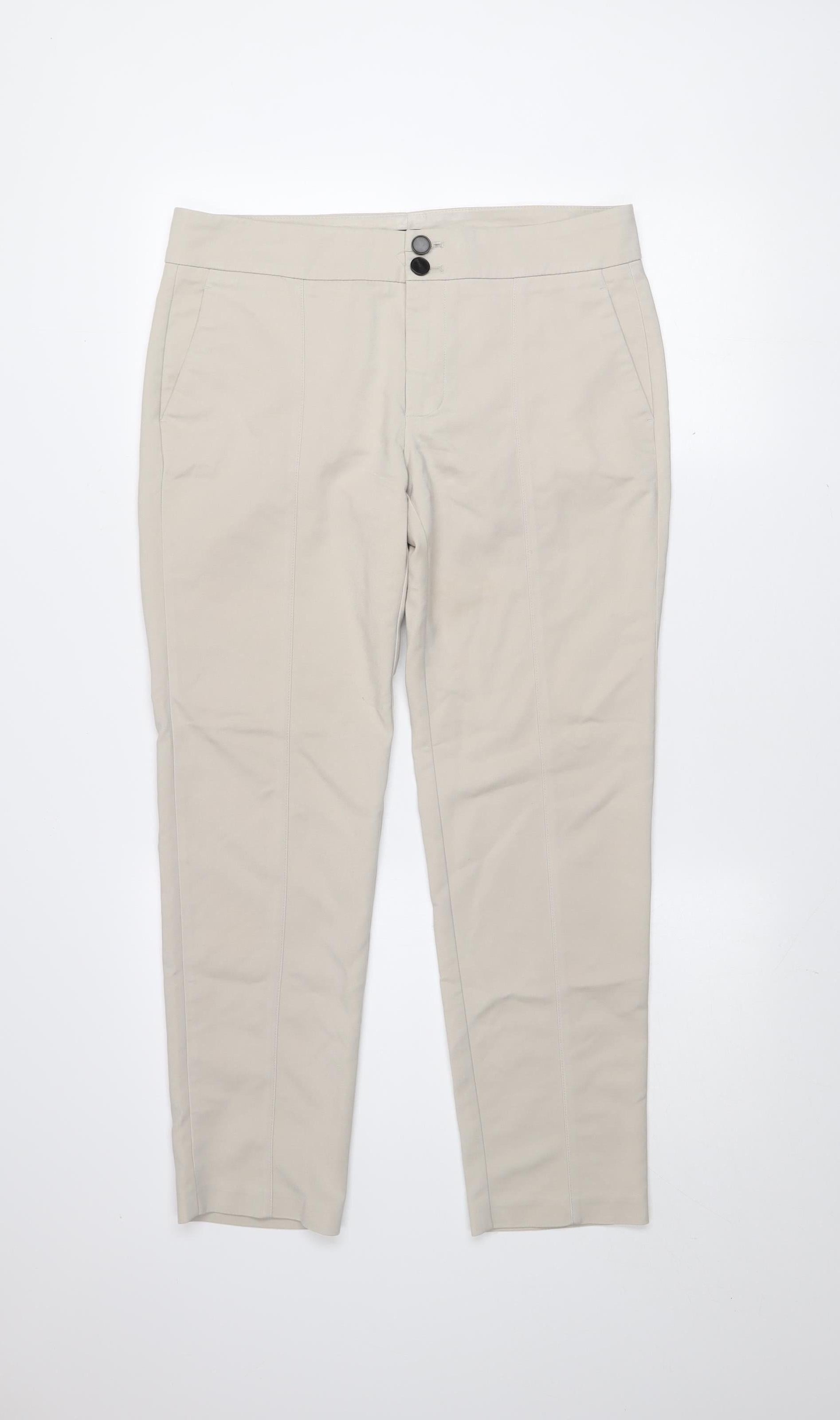 Mango Women Beige Chino Trousers Size 10 Slim Fit Stretch
