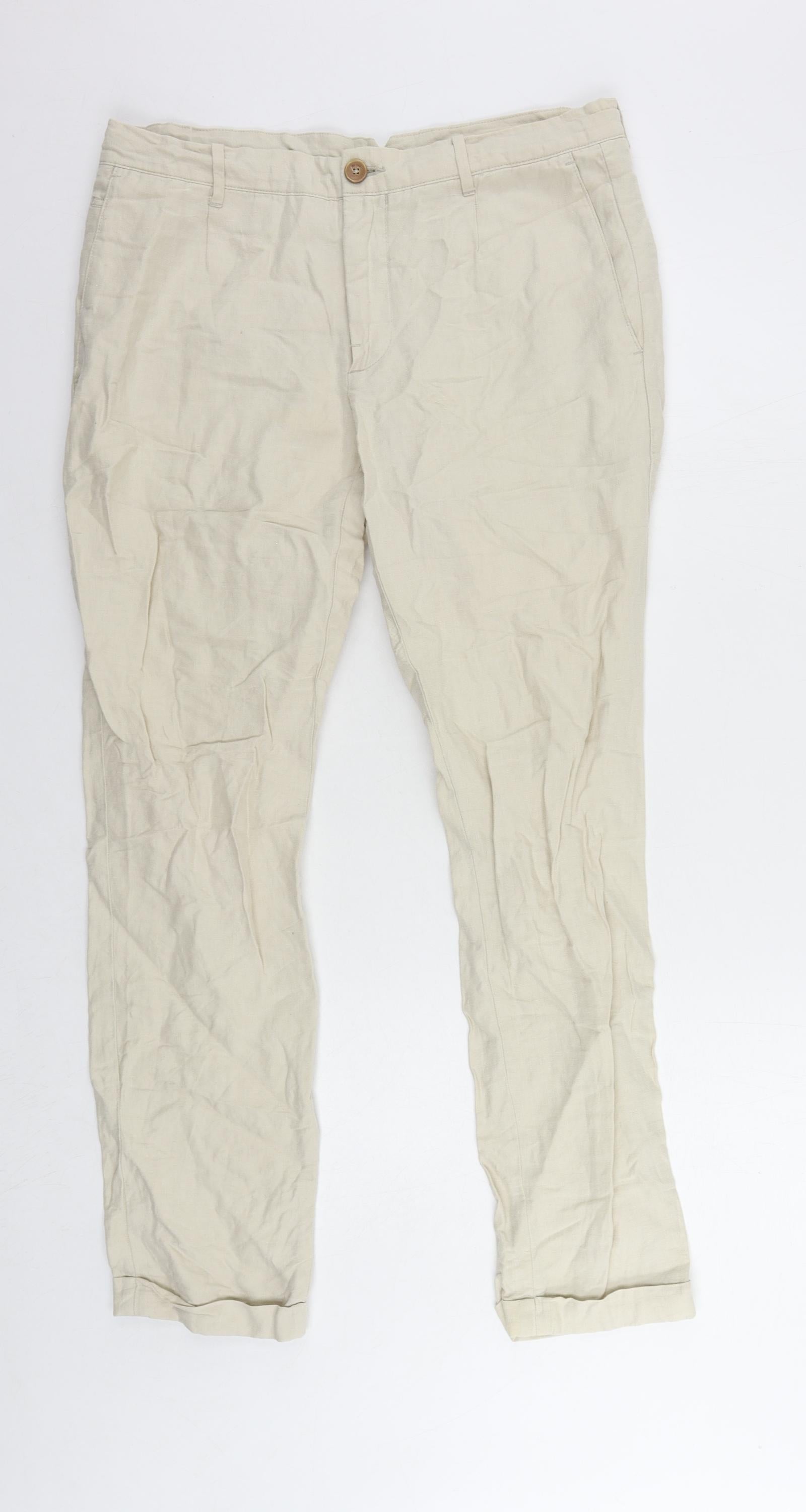 Mango Womens Beige Cotton Chino Trousers Size 12 L30 in Regular Zip